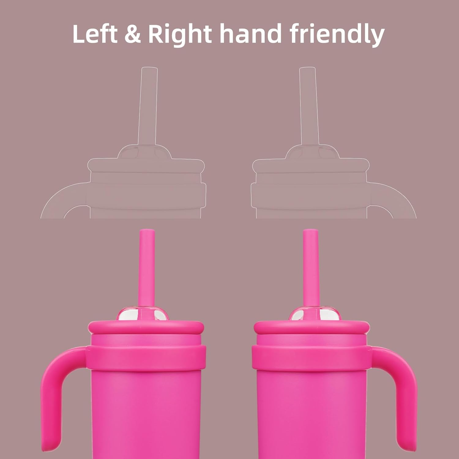 14 oz Tumbler with Side Handle, Insulated Water Bottle with Straw and 2 in 1 Lid, Stainless Steel Cup Travel Coffee Mug for Sports Office Gym,Fuchsia