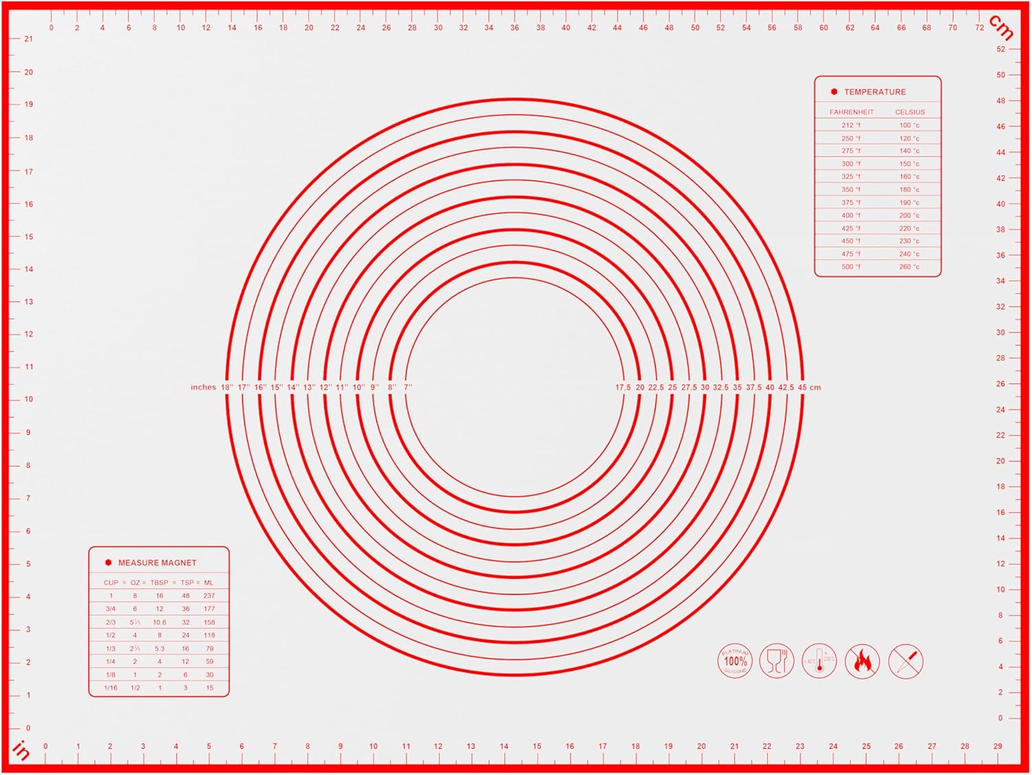 - 【Baking Measuring Helper】:Silicone Baking Mat provides accurate measurements for every home baker, making it easy to mark the size of the dough and making the baking process easier and terrier precise.
