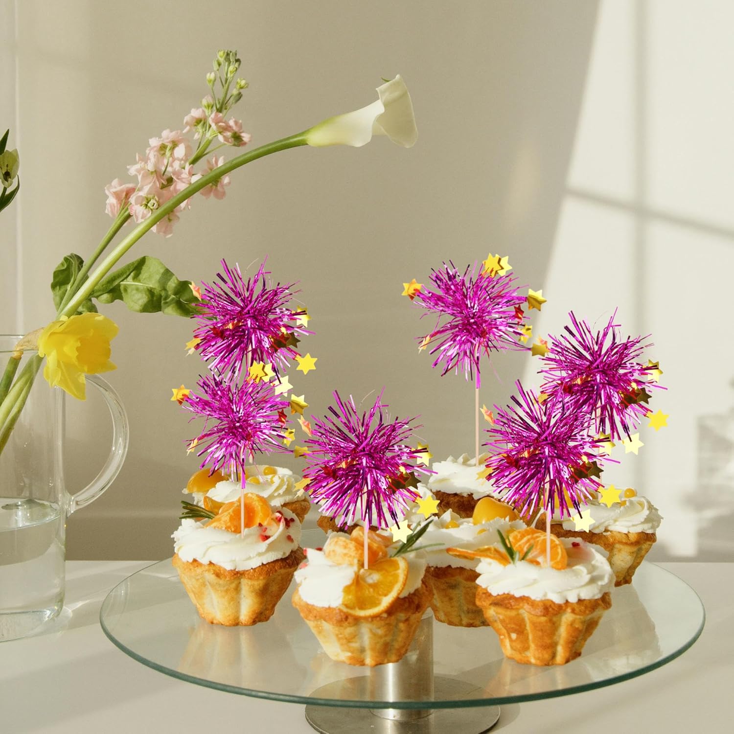 - Buy with Confidence ! Our foil firework cupcake toppers are intended for decoration only, please do not put them in oven or microwave. Please contact us in case of any problems, we will do all we can to make you satisfied.