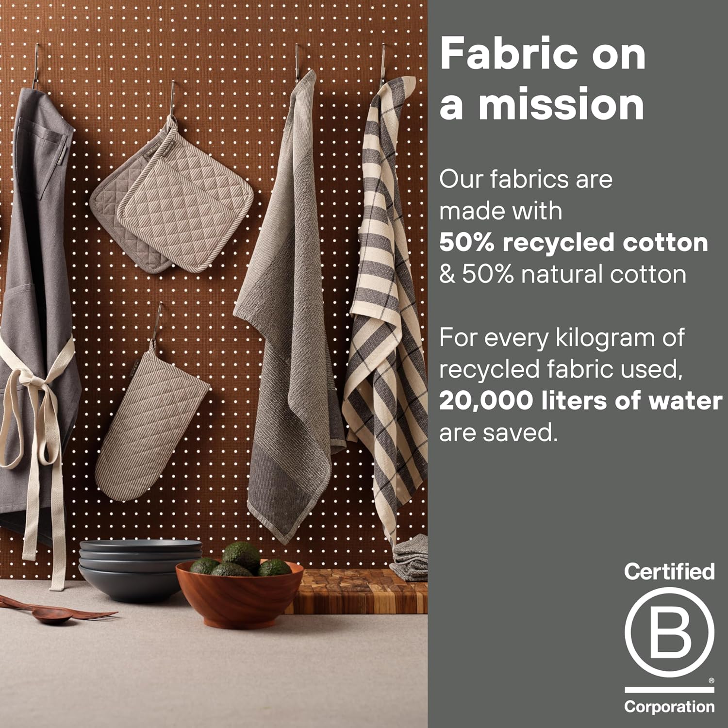 • PREMIUM DURABLE MATERIAL: Our waiter apron are made with Heavy/Twill cotton scraps, which we stop from going to the landfill and give them a second life. For every 2.2 lb of upcycled material we save 5,283 gallons of water!