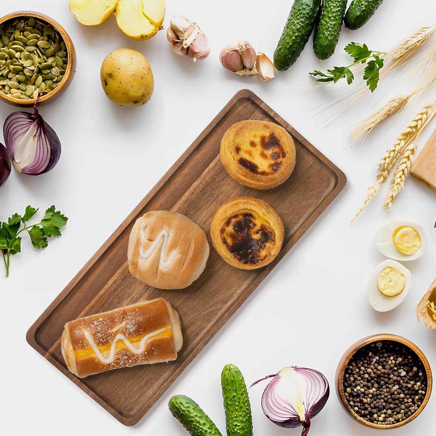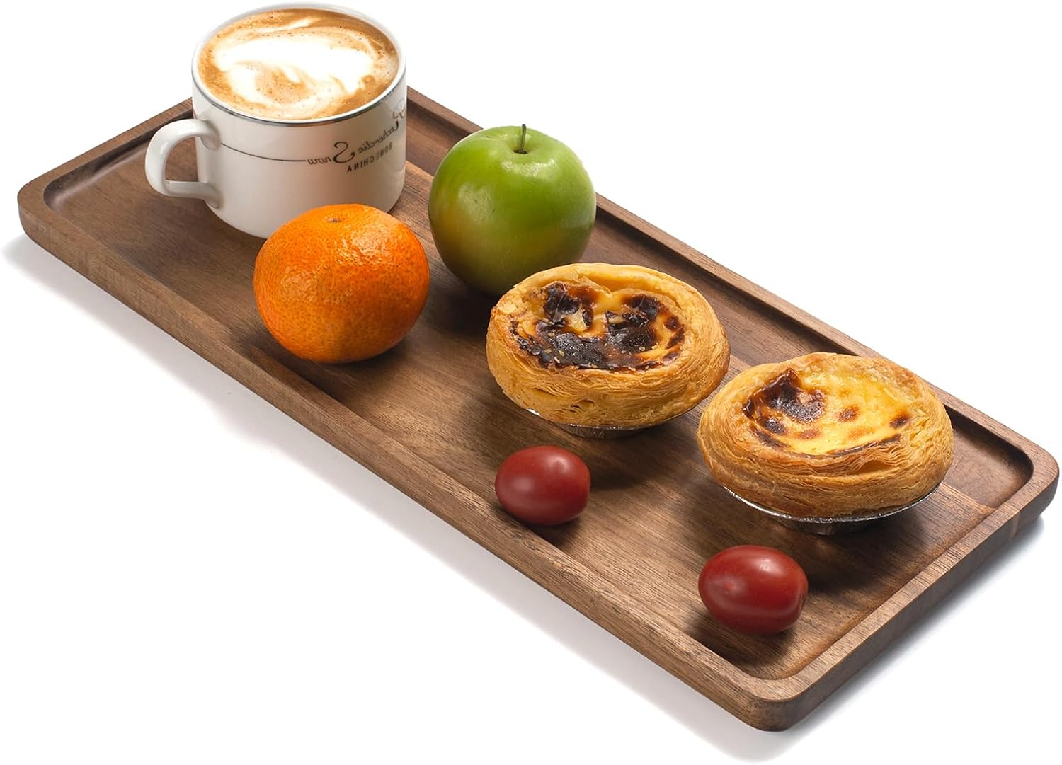 - Decorative Tray: Minimalist design and unique acacia wood construction creates retro tones for your home, suitable for any decor style. The curved edge design makes it more convenient to move the tray and keeps items safe on it.