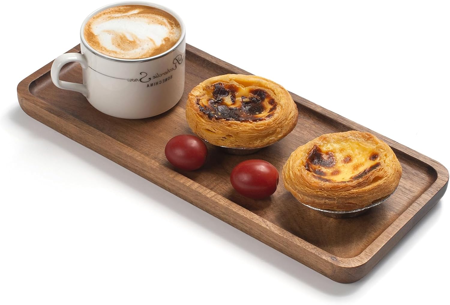 - Decorative Tray: Minimalist design and unique acacia wood construction creates retro tones for your home, suitable for any decor style. The curved edge design makes it more convenient to move the tray and keeps items safe on it.