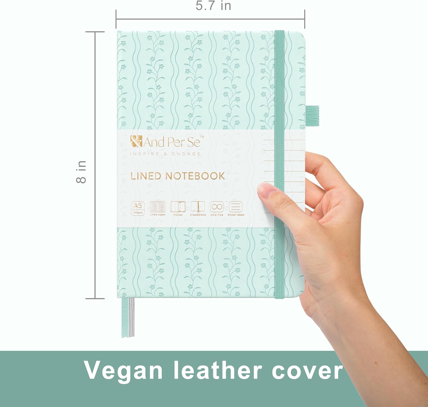 &And Per Se Lined Journal Notebook for Women&Men with Pattern, 160 Pages 100GSM Thick Paper, A5 Hardcover Journals for Writing(1 Pack, Light Blue)