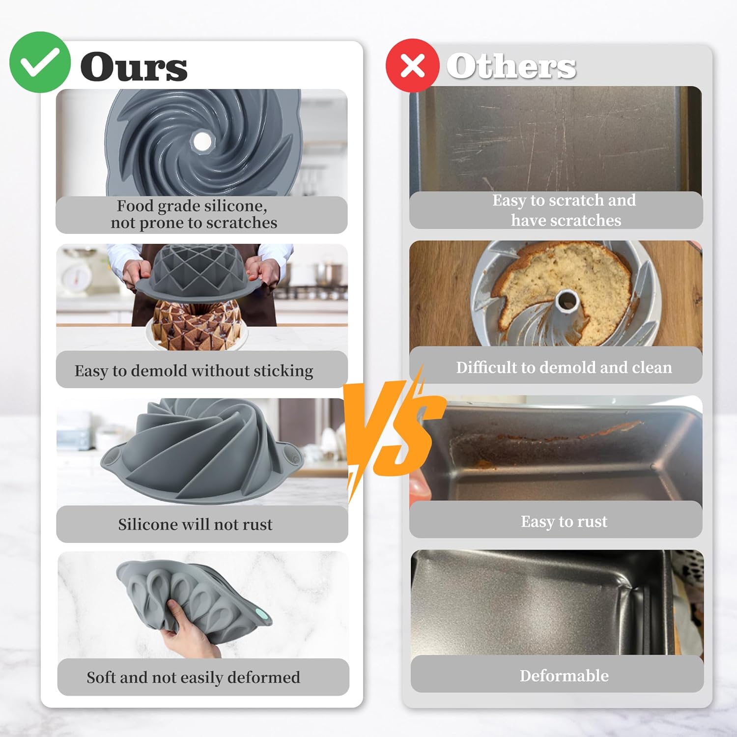 - High Quality Material - The bakeware baking set are made of food grade silicone, is more flexible.