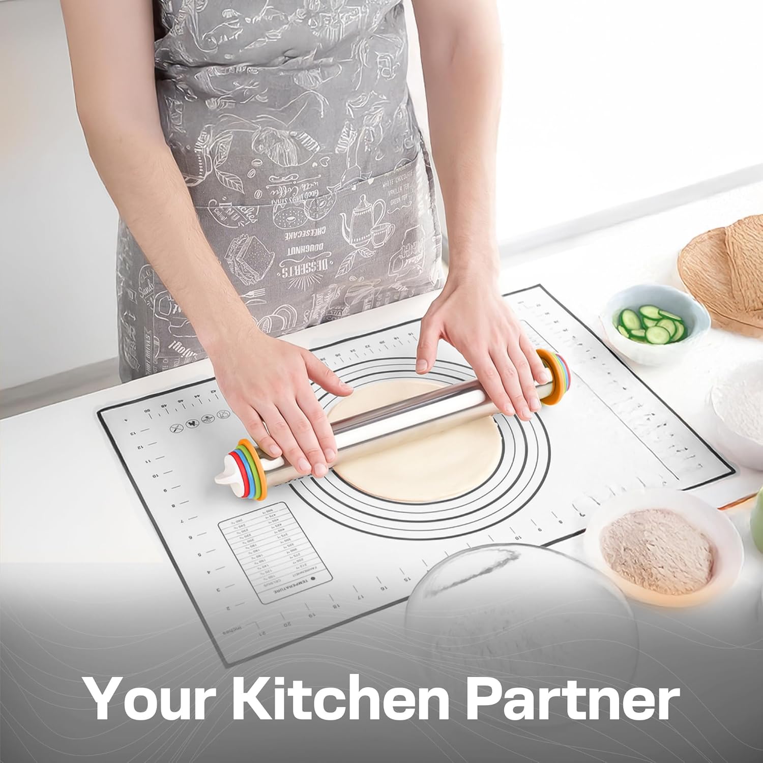 - Customizable Dough Thickness – Includes 4 removable rings (1/16", 1/8", 1/4", 3/8") so you can roll your dough to the exact thickness you need for cookies, pizza, pies, and pastries—no guesswork involved.