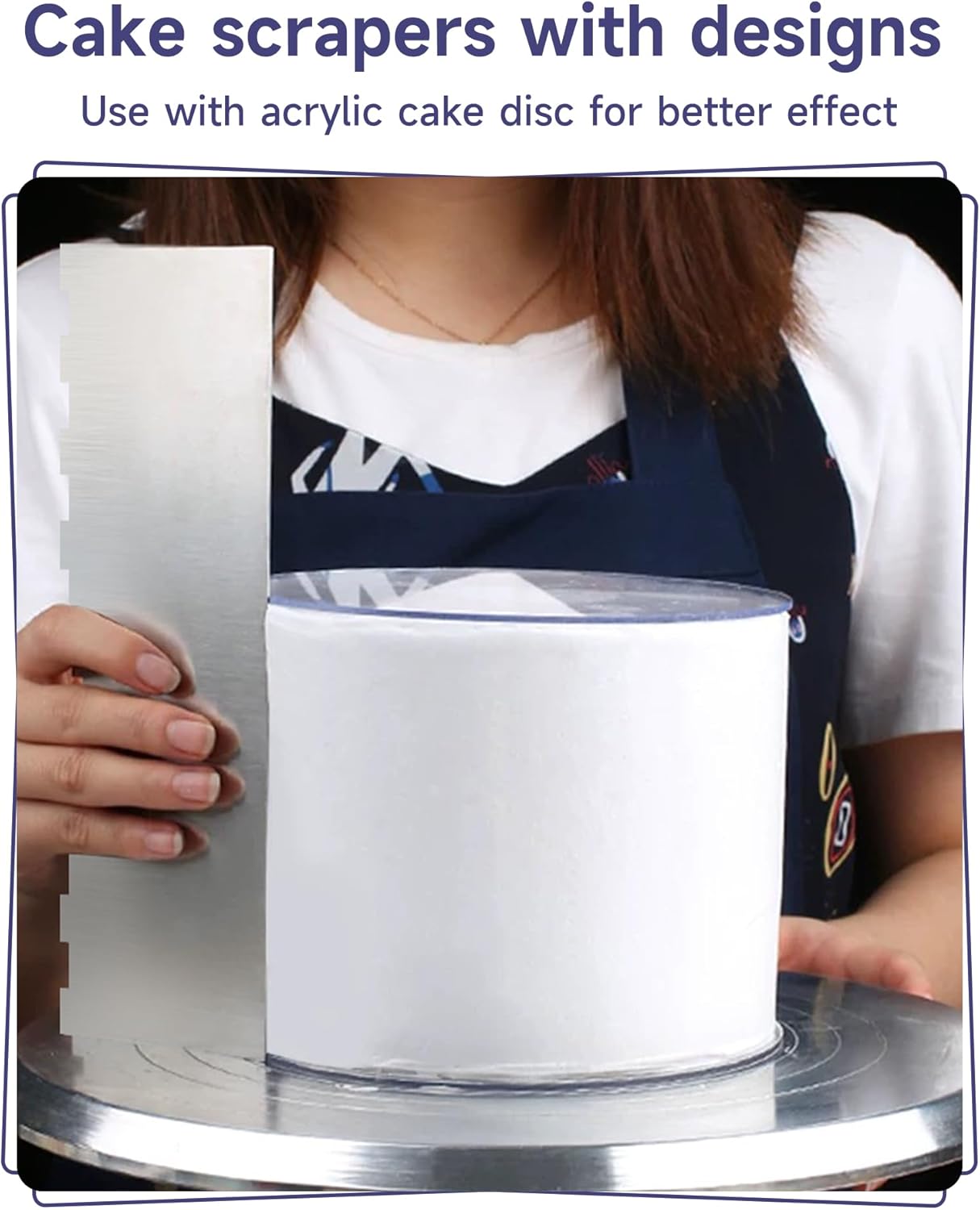 - Cake Scraper Smoother: Made of 304 stainless steel metal, the cake comb surface is smooth, thick, durable and safe to use, easy to clean, reliable material can serve you for a long term.stripes on your cake, making it easier to scrape the cake.