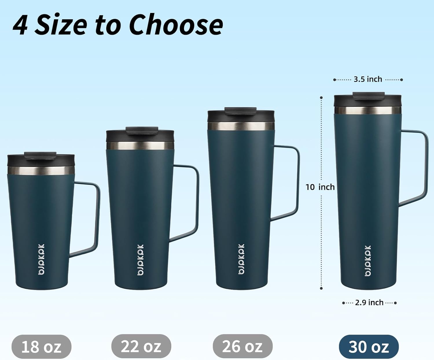BJPKPK Insulated Tumbler with Handle, 30oz Insulated Tumblers with Lid and Straw, Stainless Steel Metal Water Bottles, Coffee Travel Mugs, Cups, Navy Blue