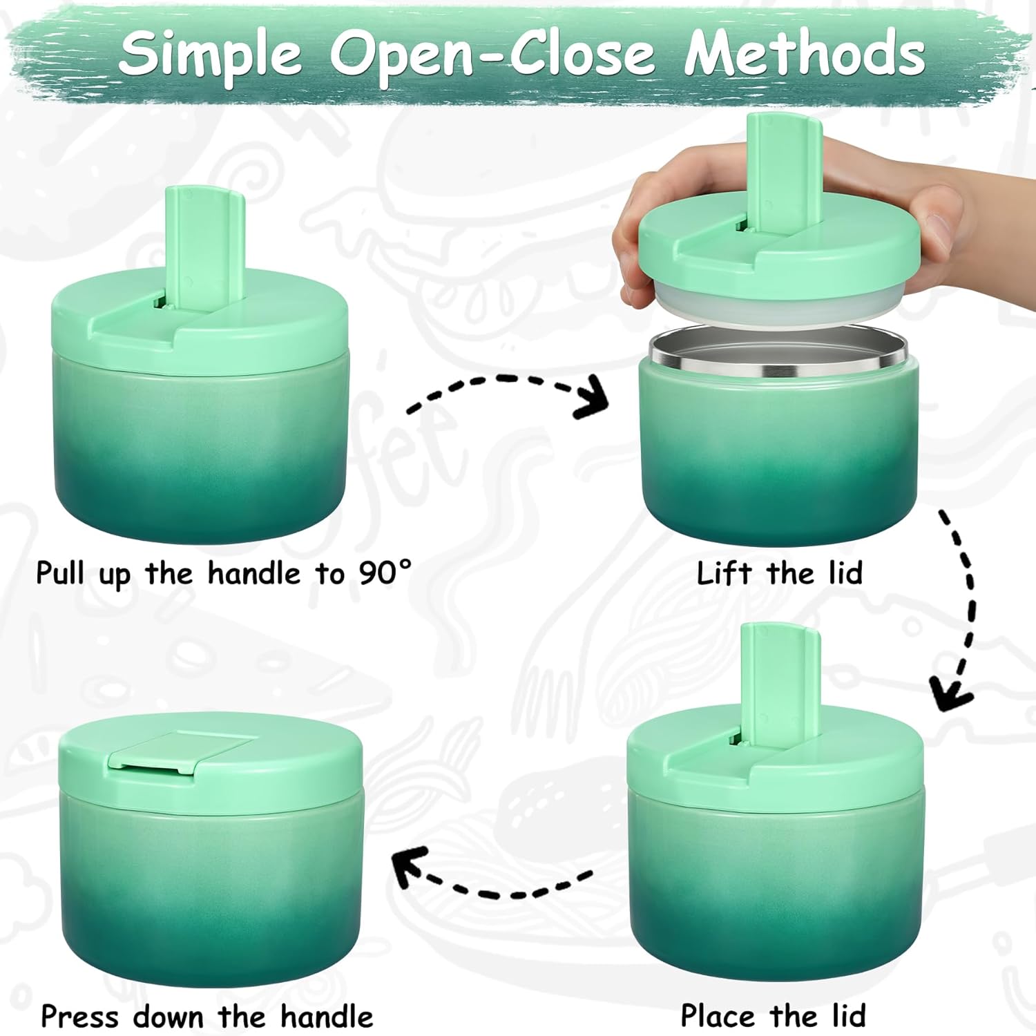 12oz Insulated Vacuum Food Jar with Buckle Lid Wide Mouth Soup Thermo for Hot Food Kids Leakproof Stainless Steel Lunch Container (Gradient Green, 12OZ)