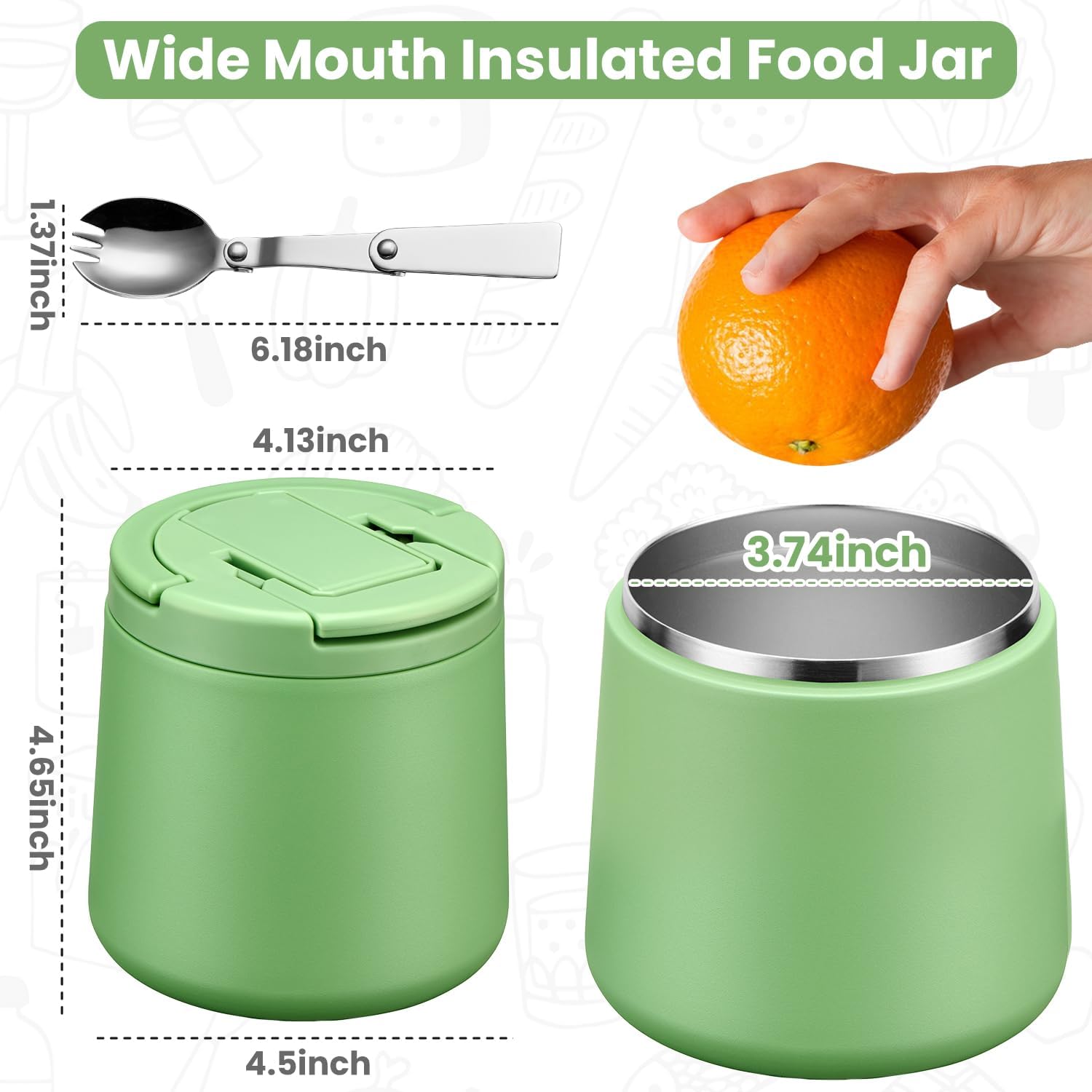- Wide Mouth Design& Large Capacity: The insulated food jars are upgraded to 14OZ and 20OZ large capacity, which allows children to hold more food.3.74 inches wide diameter is easy to fill, hold and clean. Hand washing of soup thermo containers is recommended to extend product life and keep the pattern on the outside of the product longer.