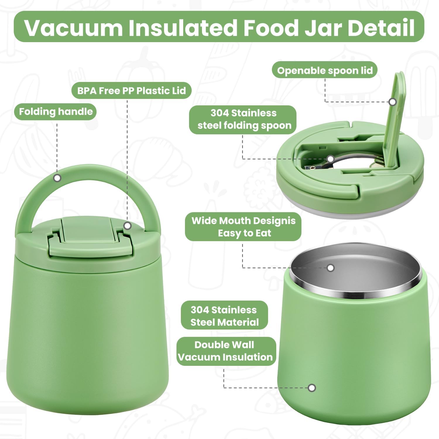- Superior Vacuum Insulation: The soup thermo is made of insulated double-walled 304 stainless steel and evacuated sealing technology. It can keep food warm or cold for more than 6 hours. The insulated food container is compact and lightweight, suitable for portable use home, work or picnic, etc.