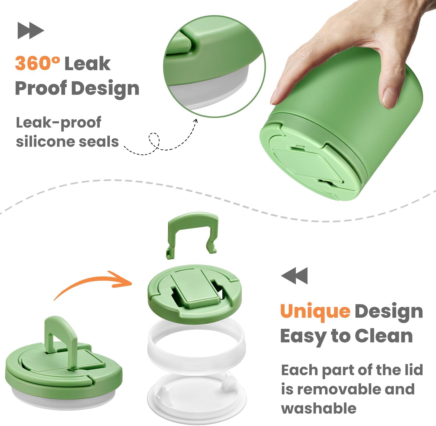 - Use Tips and Notes: In order to keep your food hot or cold for a longer period of time, we recommend preheating/pre-cooling your food or soup in hot/ice water for 5~10 minutes before placing it in the food jar. Note, when you remove the lid for cleaning and then re-installing, q please follow the installation steps in the picture, when installing the buckle please squeeze the top and bottom part of the lid with your hand to utilize the installation.