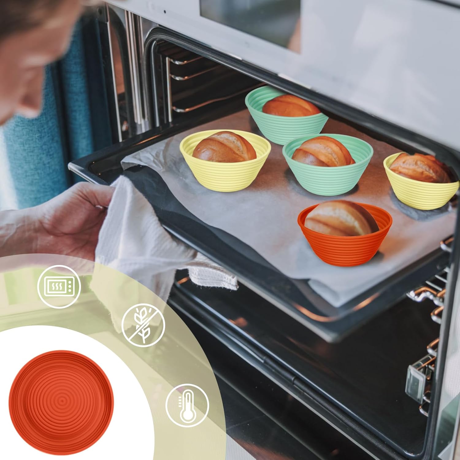 - Elevate Your Baking: Our premium silicone bread proofing baskets outshine traditional rattan ones. The sourdough starter kit is made from top-grade, BPA-free silicone, our bread baskets handle temperatures from -20°F to 440°F (-30°C to 226.15°C), ideal for fridge proofing and direct oven use. Safe, durable, and versatile—transform your baking experience today