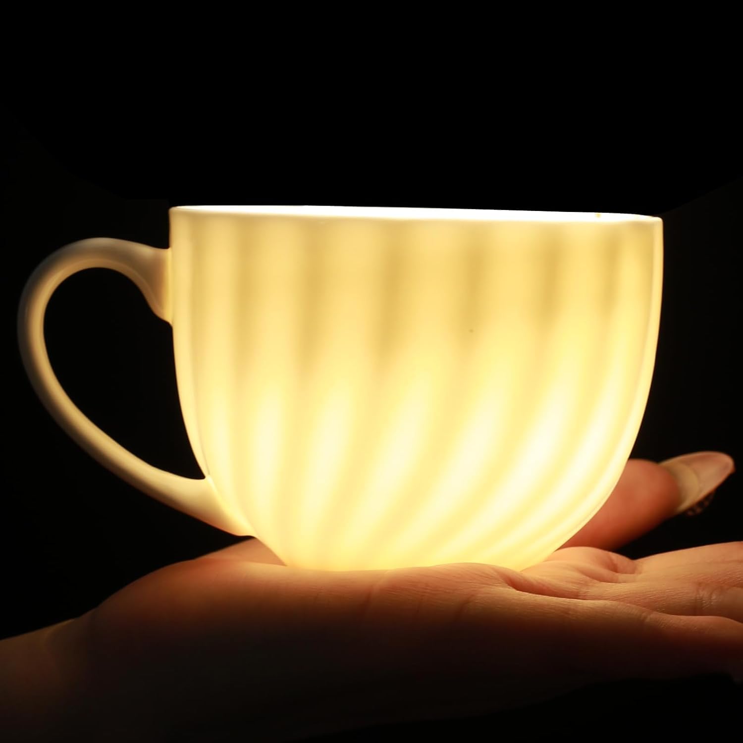 - [Luxury Bone China] Our cups and saucers are handmade from high-quality bone china. Compared to ordinary porcelain, they feature a more elegant whiteness, lighter weight, superior heat retention, and enhanced durability. When light passes through the mug's walls, it emits a soft, moonlight-like glow