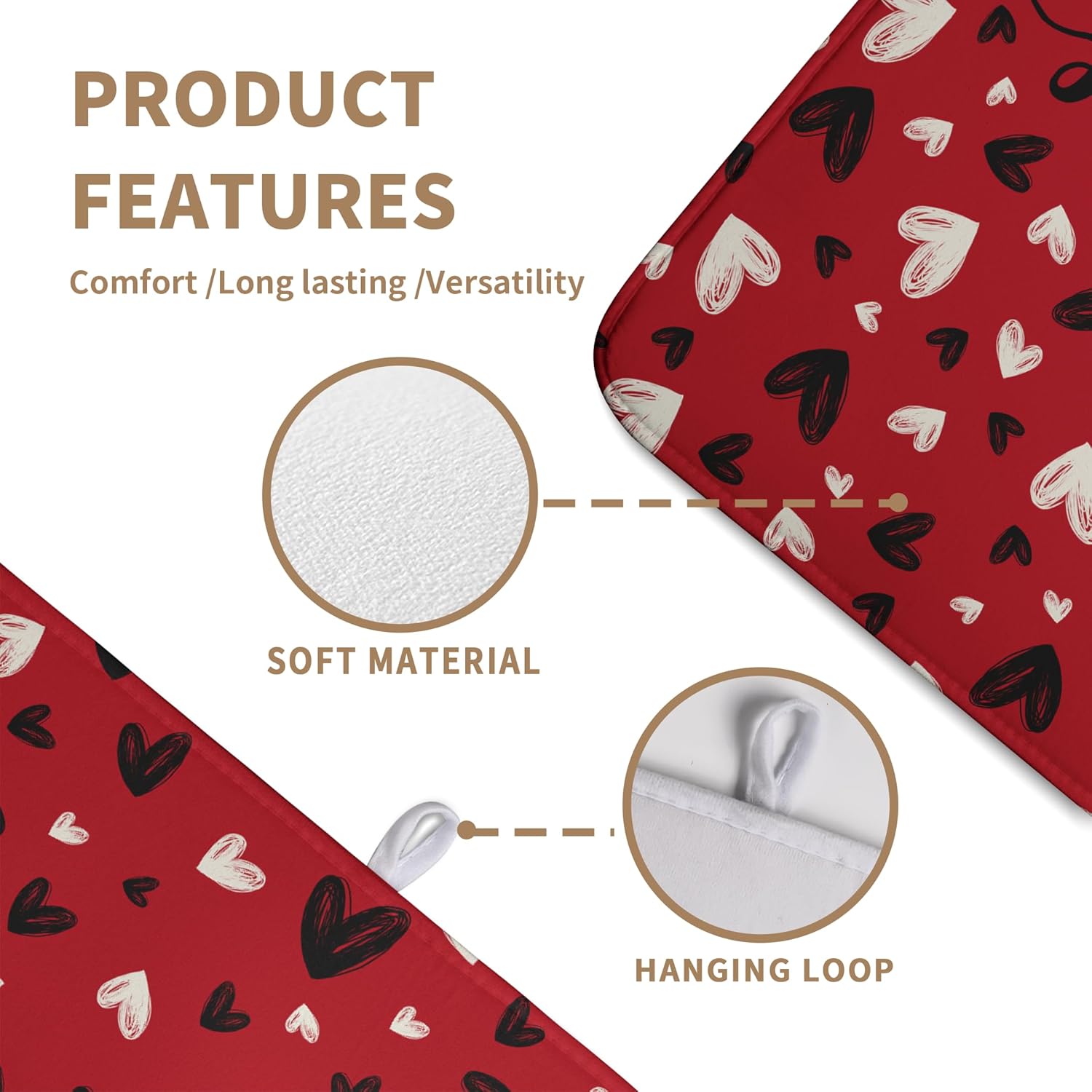 - [Material]: The surface of this valentine dish drying mat Red Black Love Heart kitchen drying mat is made of absorbent microfiber and the middle is made of composite sponge. Valentines Day Red Black Love Heart microfiber dish drying mat can be easily rolled up and folded for storage or hanging.
