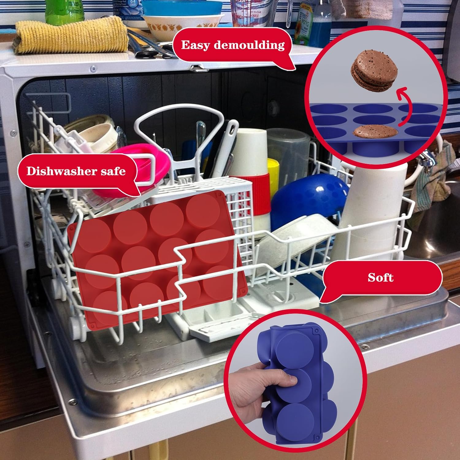 - 【QUALITY MATERIAL】:Silicone oreo cookie molds are made of food-grade silicone. Flexible and Non-Stick, Silicone temperature resistant from -40 to 230 degrees Celsius (-40℉to +440℉), oven, microwave, dishwasher and freezer safe. They can be hand washed or conveniently cleaned in the dishwasher for a hassle-free cleanup.