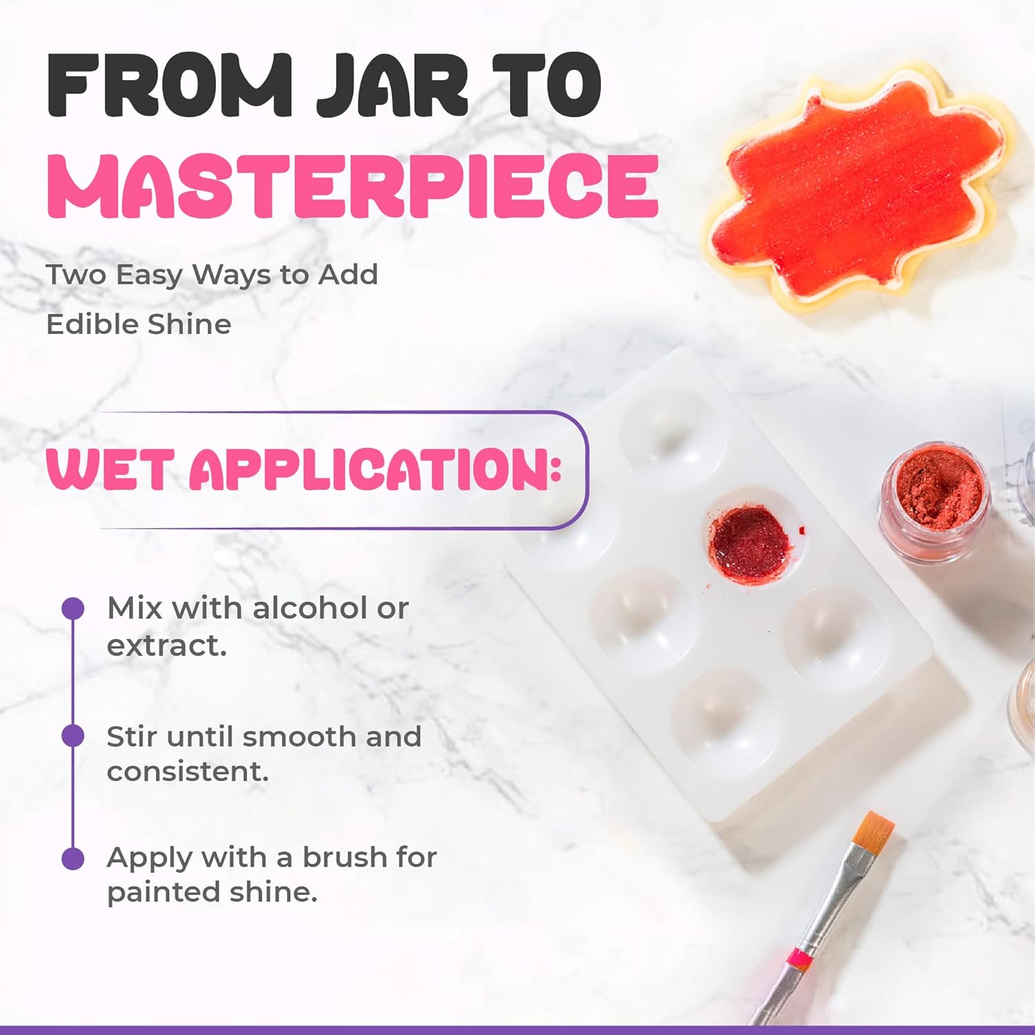 - Pearl Luster Dusts for Shimmering - Enhance your creations with high-gloss sheen colors of pearl luster dusts, adding a shimmer reminiscent of pearls to cake pops and various confections. Ideal for decorating cakes for weddings, anniversaries, birthdays, graduations, and more, the shimmer dust powder imparts a sophisticated metallic look.