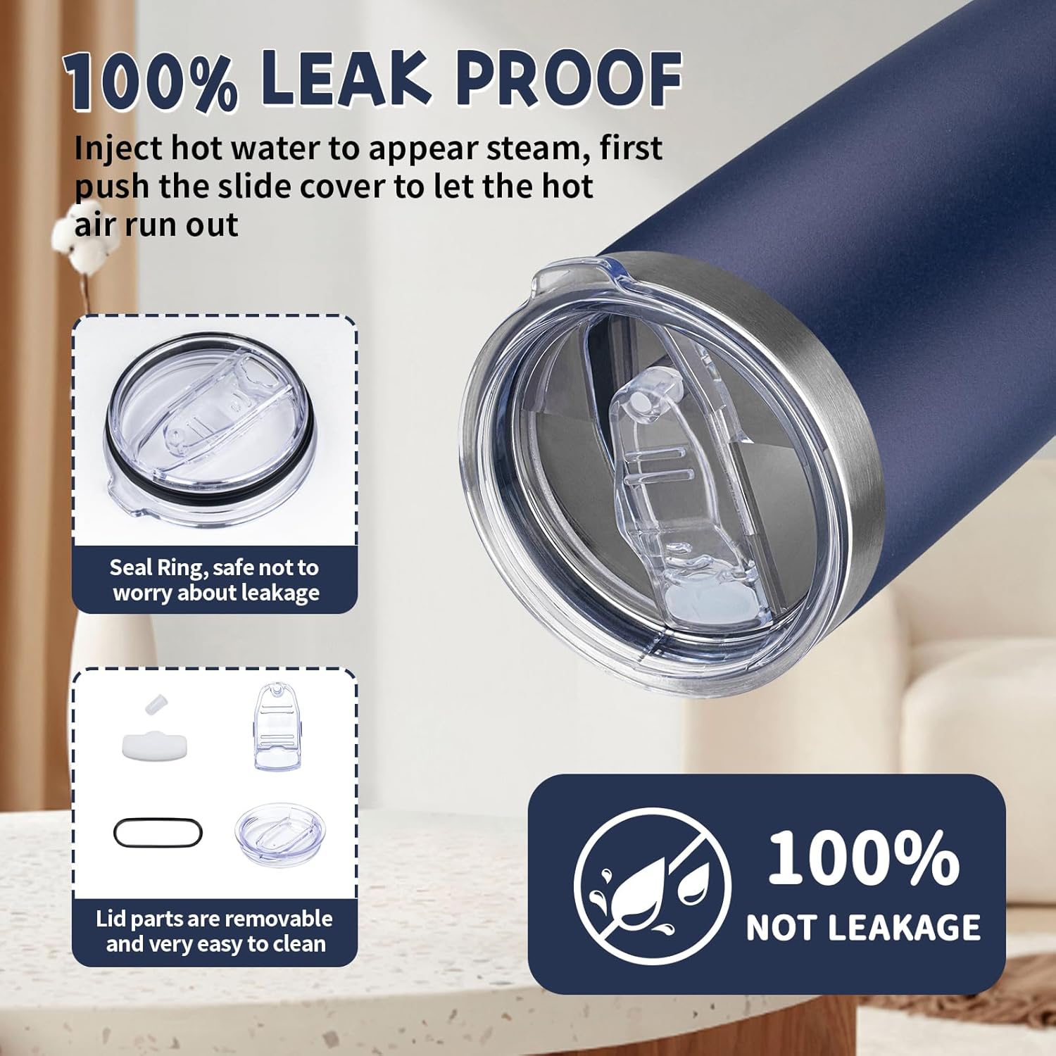 20 oz Tumbler with Lids and Straws, Stainless Steel Insulated Coffee Tumbler, Double Wall Vacuum Insulated Travel Mug Cup, Leakproof Thermal Coffee Cup for Hot and Cold Drinks (navy blue)