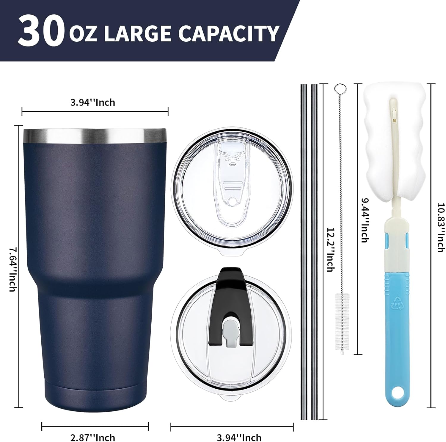 30 oz Tumbler with Lids and Straws, Stainless Steel Insulated Coffee Tumbler, Double Wall Vacuum Insulated Travel Mug Cup, Leakproof Thermal Coffee Cup for Hot and Cold Drinks (Navy Blue)