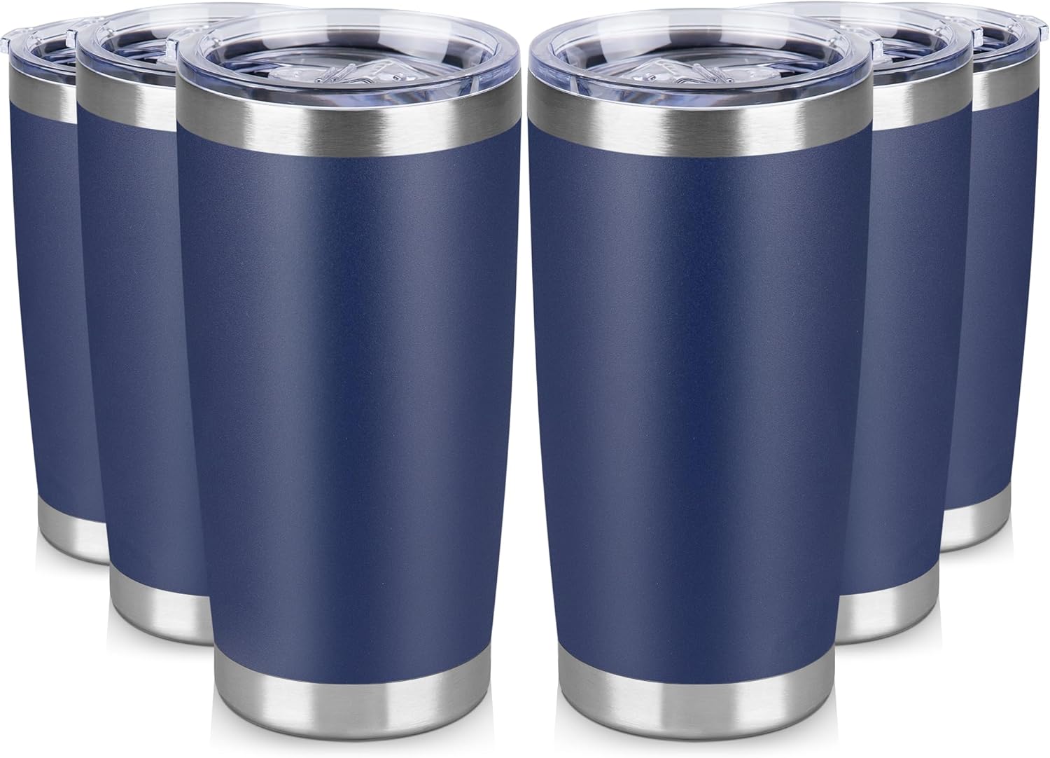 20 oz Tumbler Stainless Steel Tumblers Bulk with Lid Double Wall Insulated Coffee Tumbler Cups for Hot & Cold Drinks Powder Coated Travel Coffee Tumbler Mug Metal (Navy Blue, 6 pack)