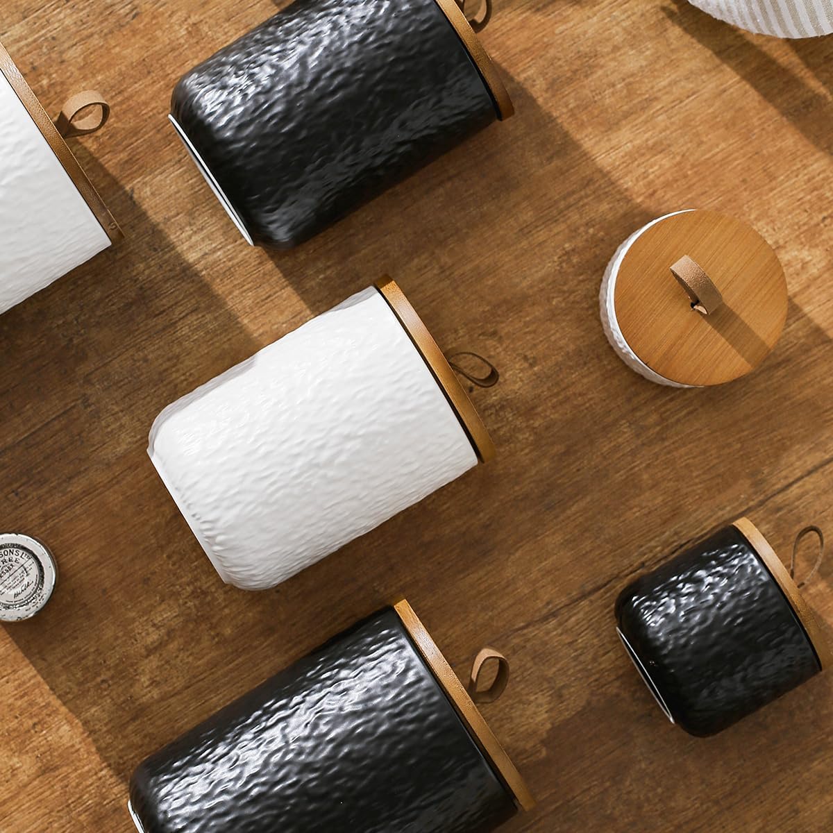 - CERAMIC: This Jar Storage Set is made of ceramic material with thick, solid and textured features, personal simple design make it be a decoration in kitchen or a gift for friend in festivals.