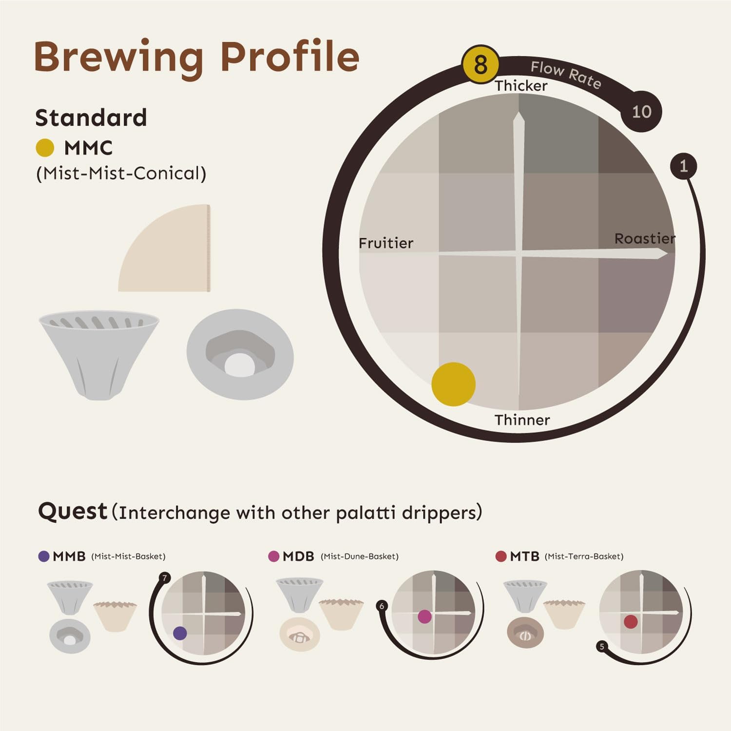 - High Flow Rate for a Vibrant Cup: Featuring wider spiral ribs and a larger opening, Mist is engineered for a high flow rate, delivering an agile and dynamic brewing experience that results in a lively, flavorful cup.