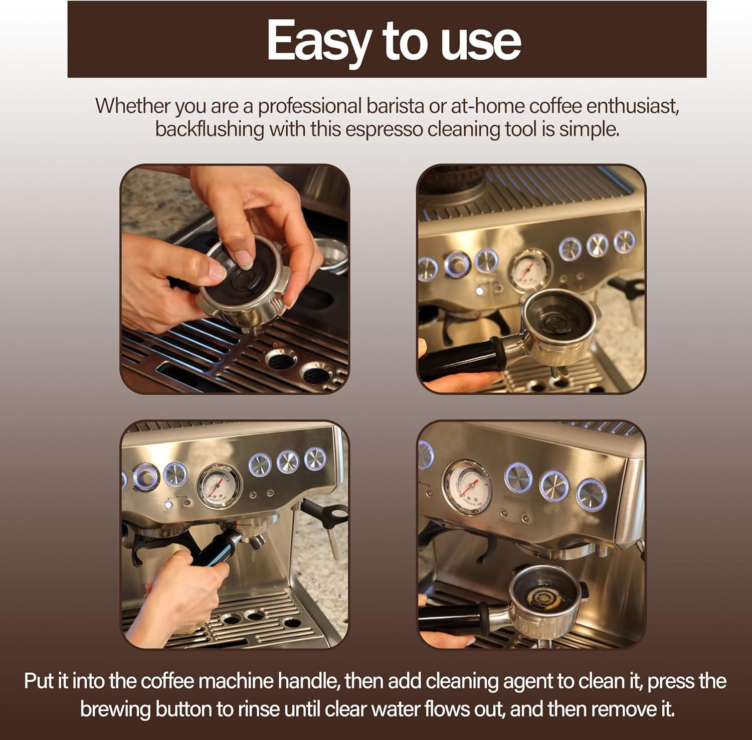 - 2:To get the best shot of espresso every time, your machine needs to run smoothly. Regularly backflushing the valve system will help maintain optimal coffee flow. Use our cleaning disc compatible with select Breville espresso machines with a tablet to get the job done (tablets not included).