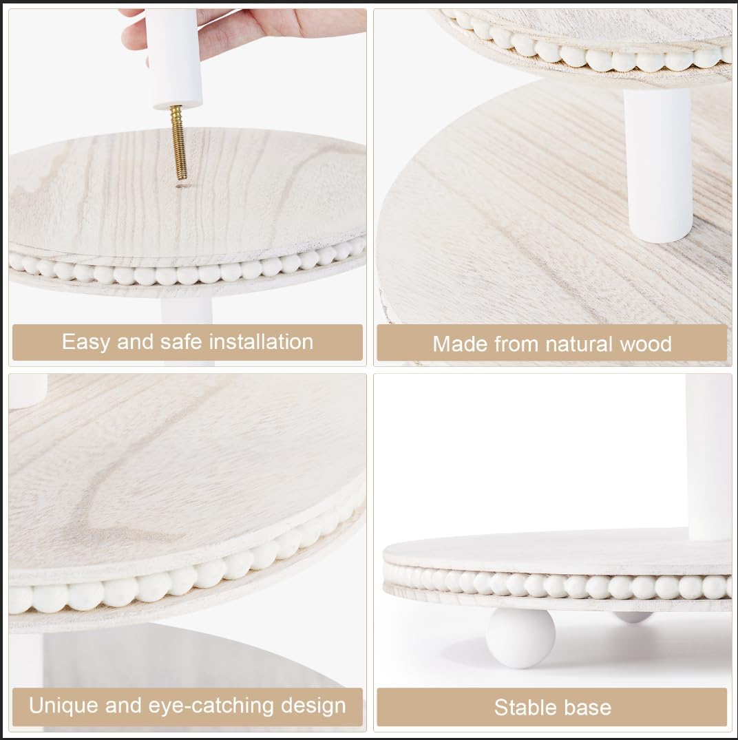 - Made of natural wood: Our cake rack is made of natural wood, with clear and visible textures on the boards, and its unique bead decoration adds an elegant beauty, making it perfect for joyful weddings and parties.Smooth surfaces can be wiped with a damp cloth even if they are coated with grease to maintain cleanliness