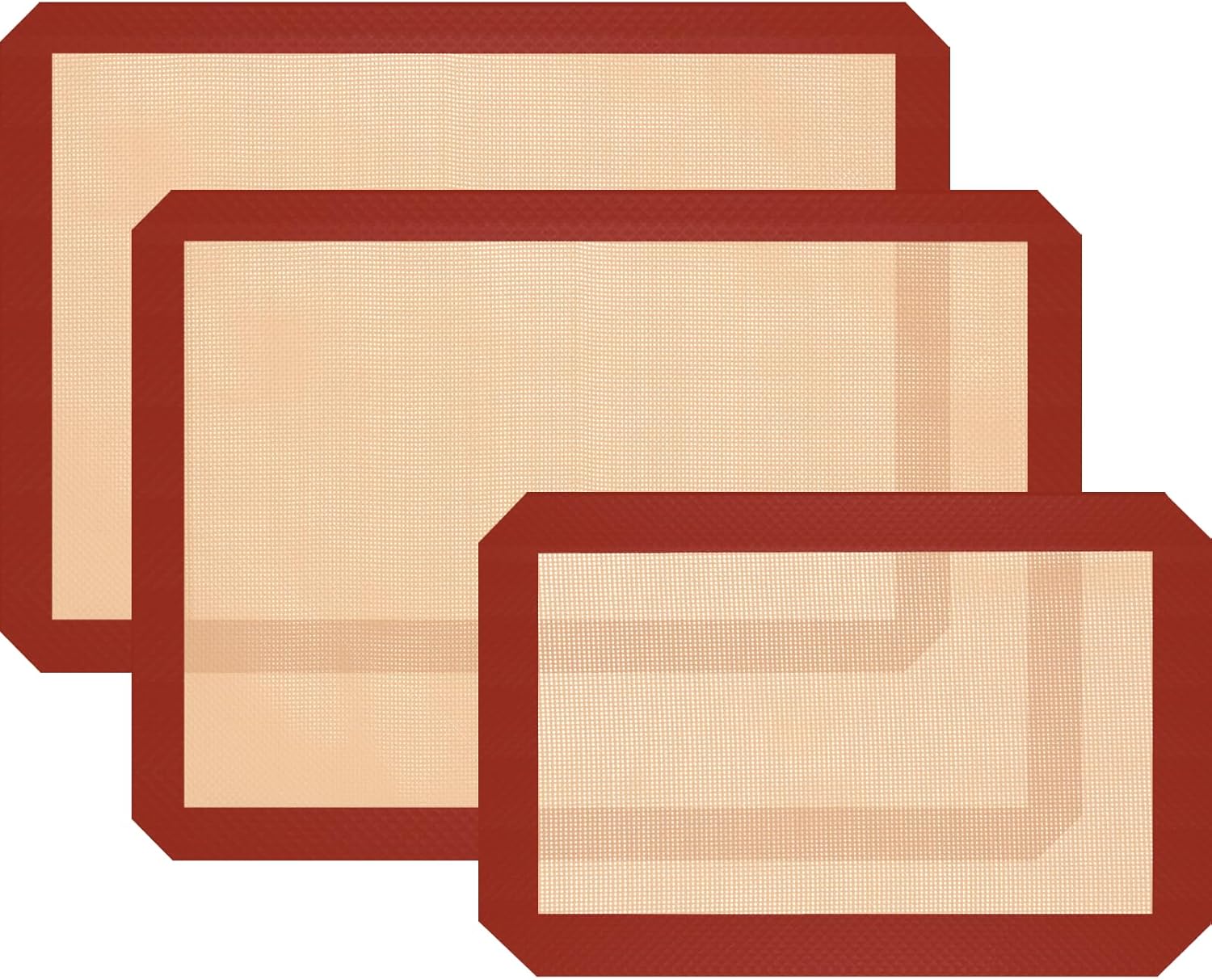 Silicone Baking Mat, 3 Pack Reusable Baking Mat, Non-Stick, Food Safe Silicone Mats for Baking, Oven Baking Sheet for Making Cookies, Macaroons, Bread