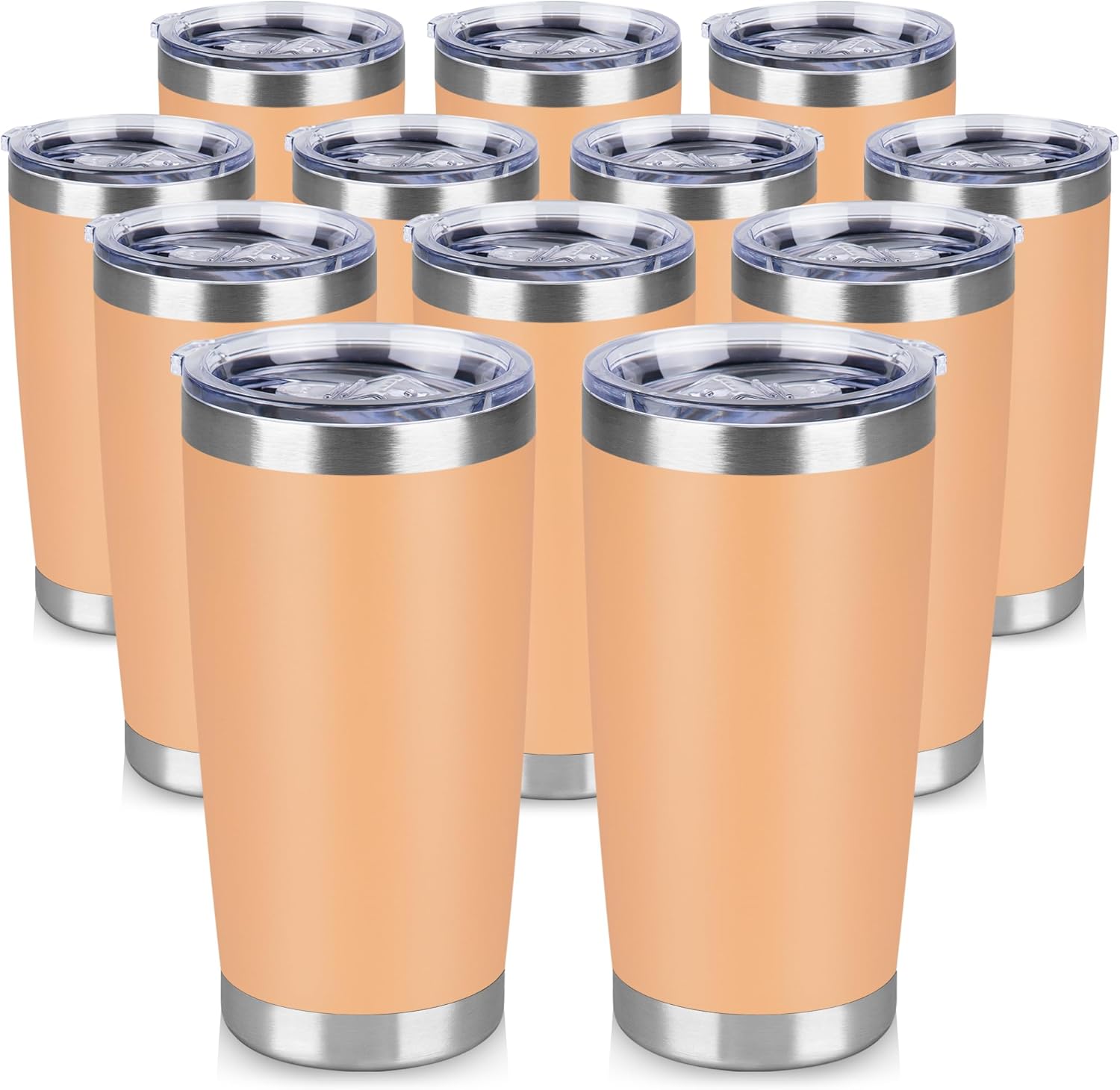 20 oz Tumbler Stainless Steel Tumblers Bulk with Lid Double Wall Insulated Coffee Tumbler Cups for Hot & Cold Drinks Powder Coated Travel Coffee Tumbler Mug Metal (Cream Orange, 12 pack)