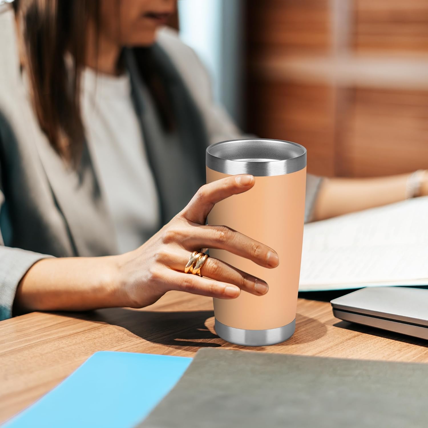 - Insulated Coffee Tumbler: Our travel tumbler features double-walled vacuum insulation technology that ensures your beverage stays hot for up to 6 hours and cold for up to 12 hours. This makes it the right choice for those who want to enjoy their favorite drinks at the perfect temperature, no matter where they are.