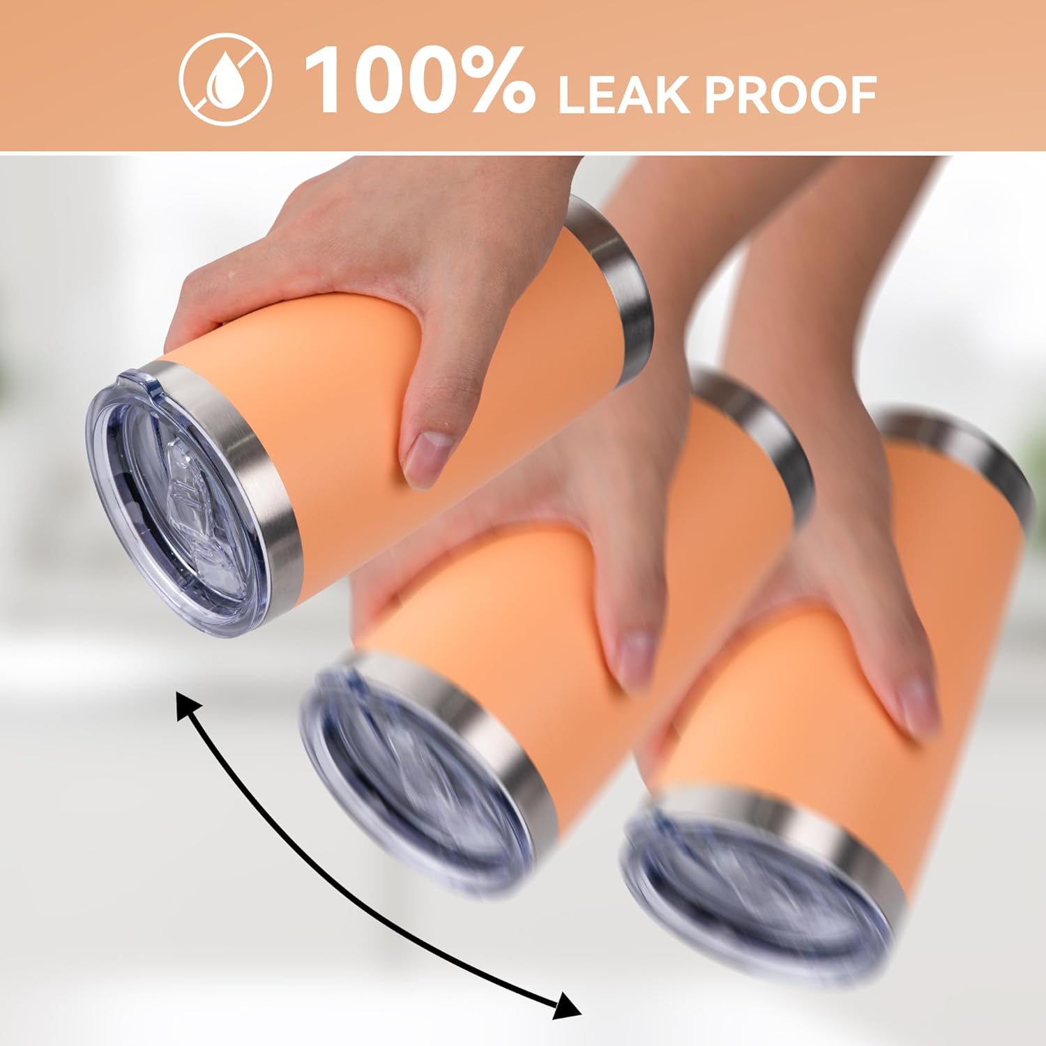 20 oz Tumbler Stainless Steel Tumblers Bulk with Lid Double Wall Insulated Coffee Tumbler Cups for Hot & Cold Drinks Powder Coated Travel Coffee Tumbler Mug Metal (Cream Orange, 1 pack)