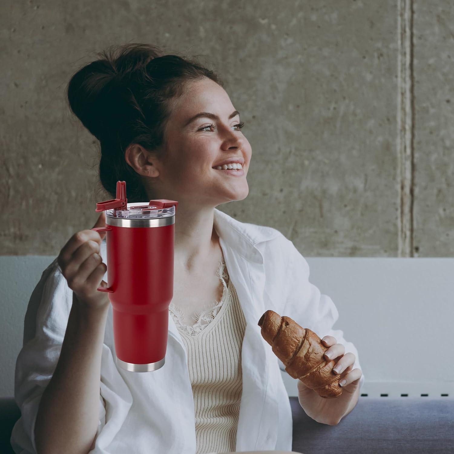 - 2 IN 1 LID: 30oz tumbler lid not only have flip way , but also straw way. Two ways to drink make this mug the perfect choice for you. Screw-on Lid 100% leak proof.