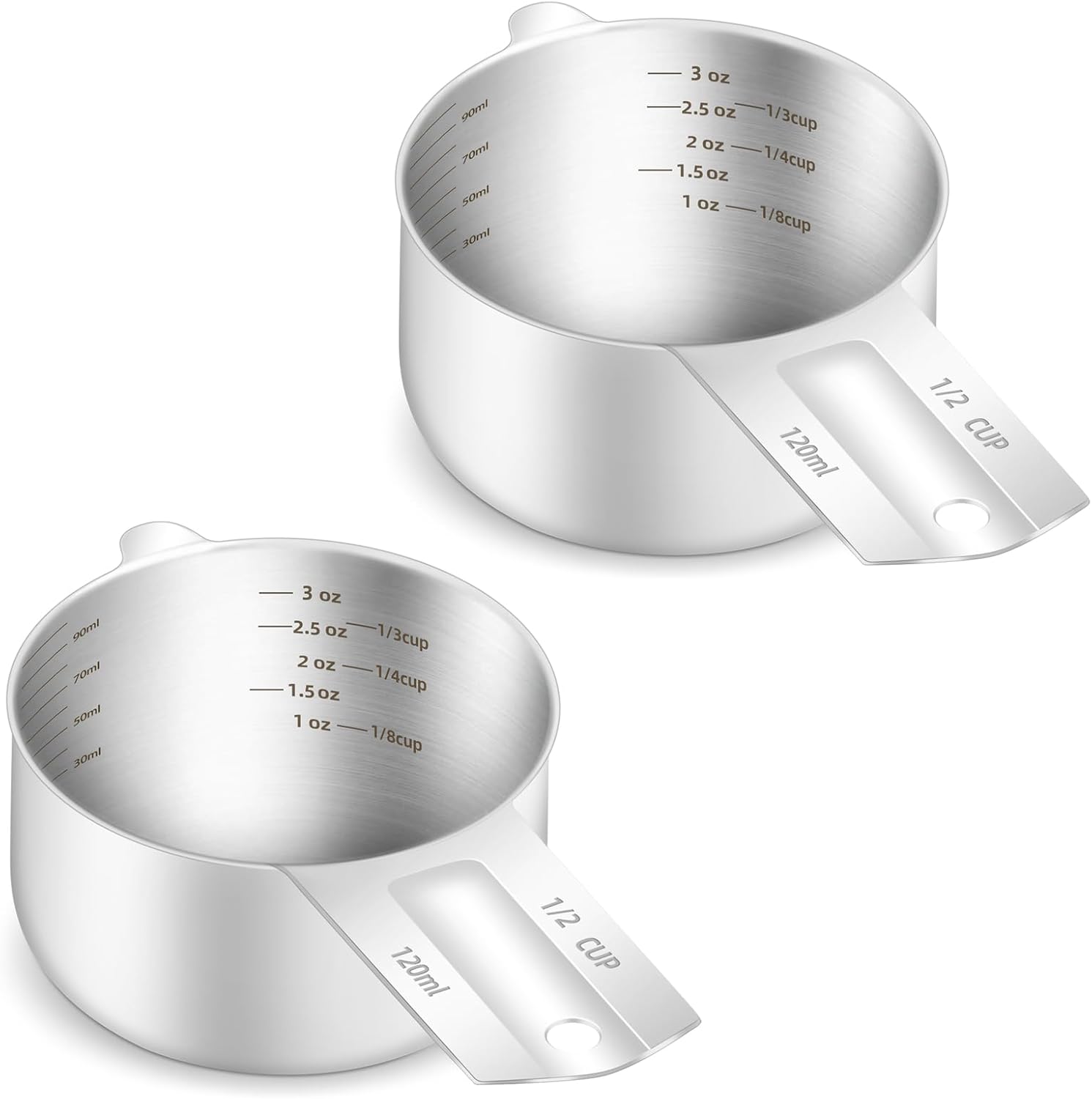2PCS 1/2Cup (120ml, 4oz) Single Measuring Cup, Etched Inner Scale Stainless Steel Measure Scoop, Metric and US Measurement, Dishwasher Safe