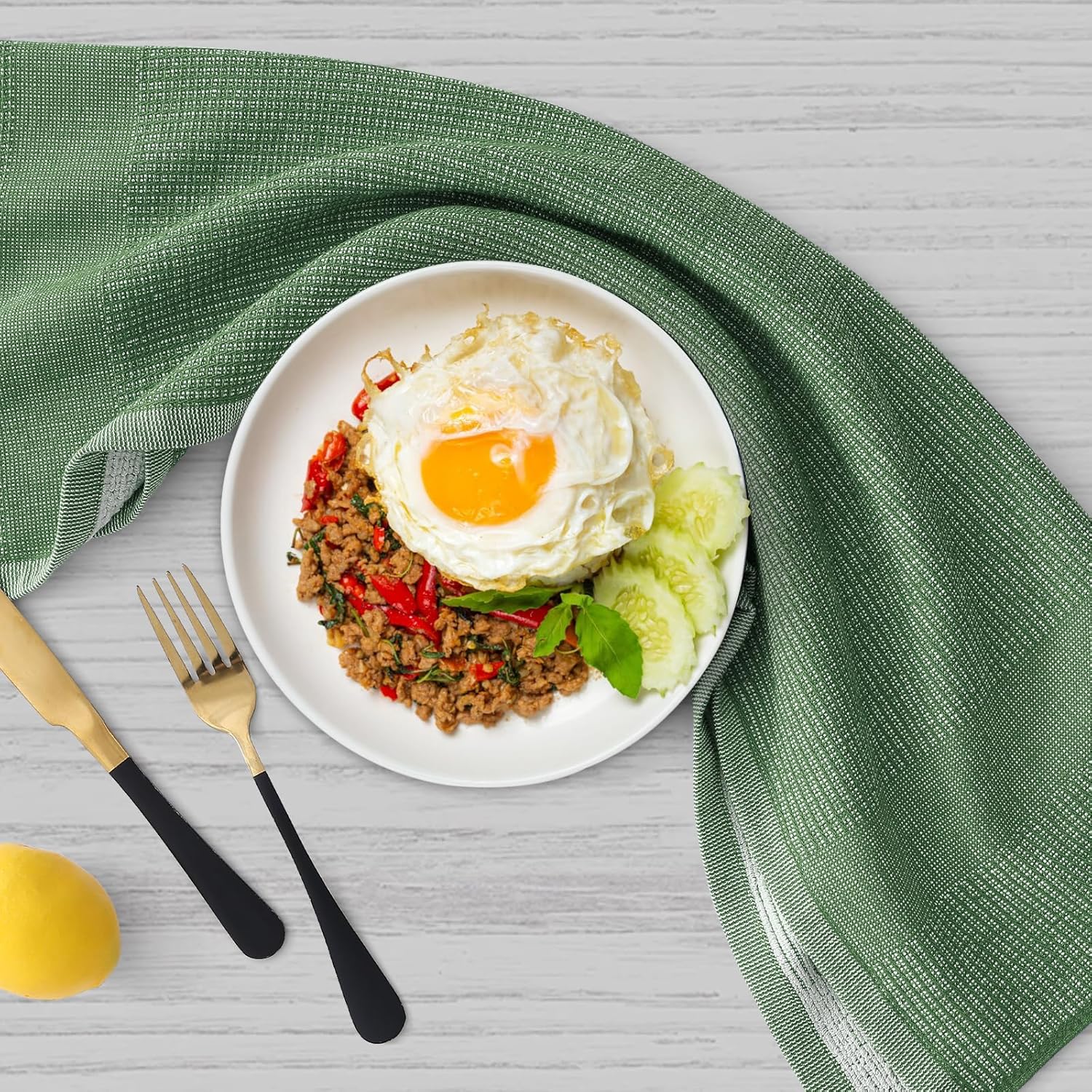 Homaxy Premium Kitchen Towels(18”x 28”, 6 Pack), Large Cotton Kitchen Hand Towels, Flat and Terry Dish Towels, 380 GSM Highly Absorbent Tea Towel Set with Hanging Loop, Grass Green
