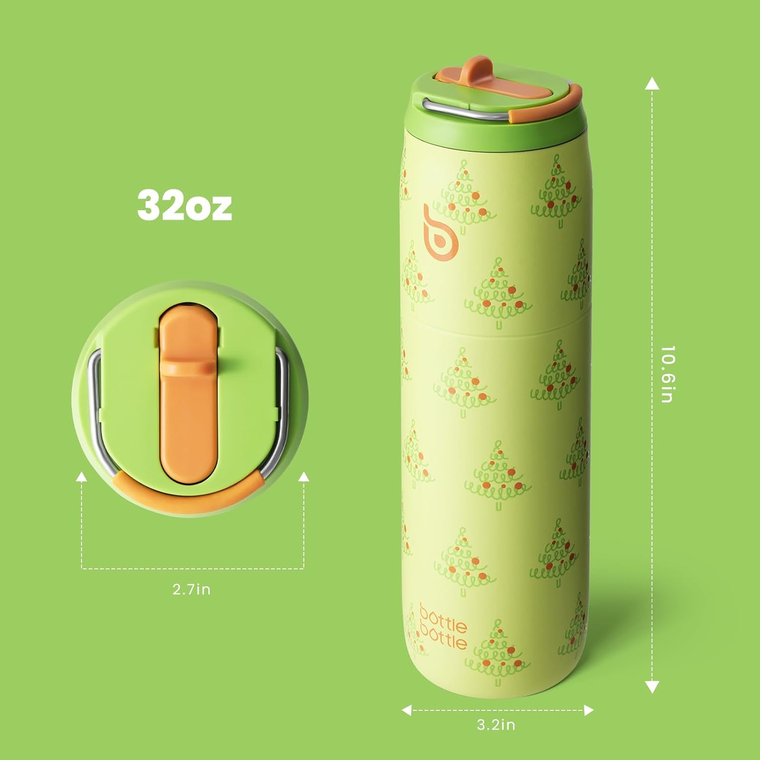 BOTTLE BOTTLE Stainless Steel Water Bottle with Straw Lid and Handle 32 oz Vacuum Insulated Cup for Sports Travel Gym Hiking,Leak-Proof Wide Mouth Water Bottles for Women and Men,tree