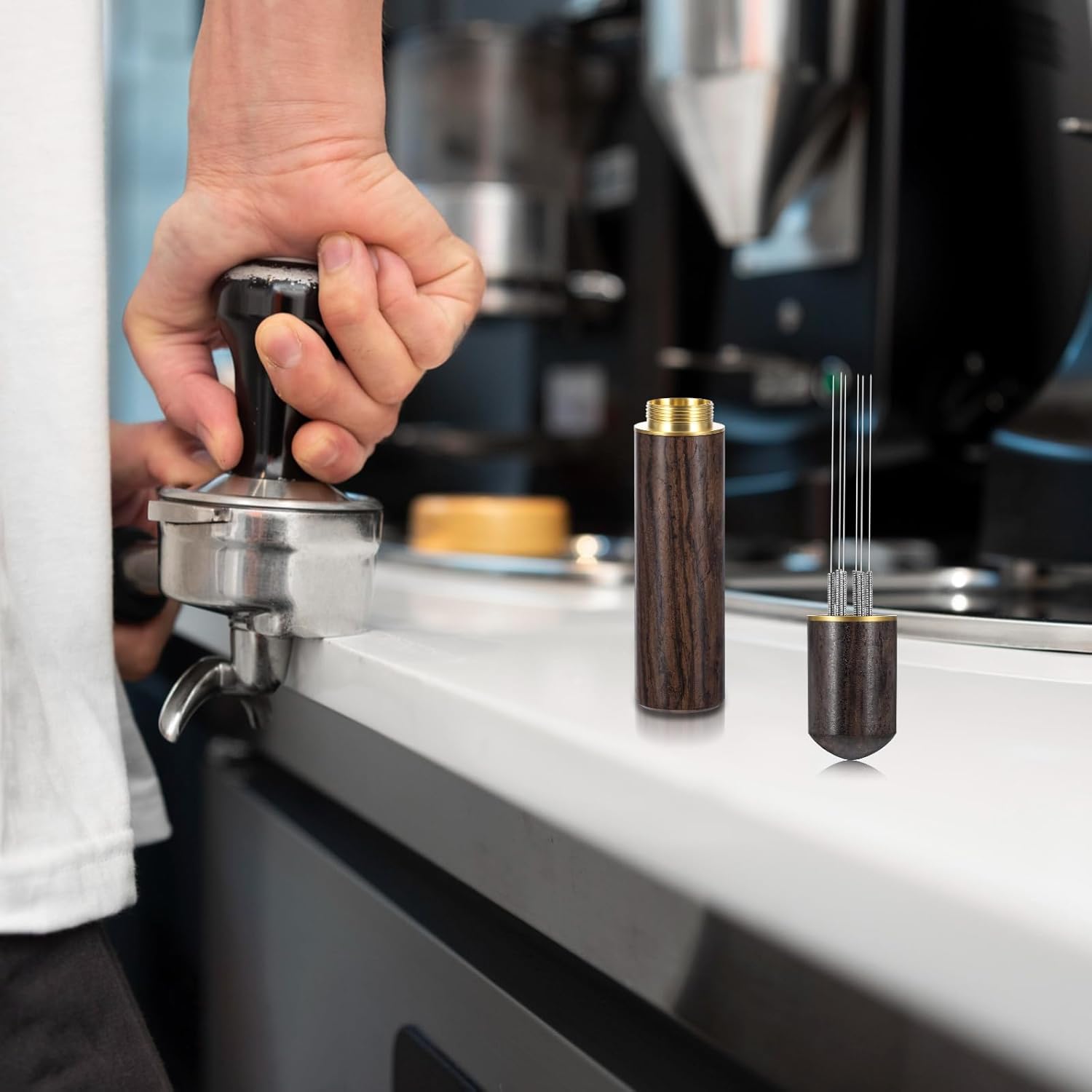 Espresso Needle Distributor,6 Needles 0.3mm Espresso Coffee Stirrer,Coffee Stirring Tool,Professional Barista Espresso Distribution Tool,Natural Wood Handle,Espresso Machine Accessories,Brown