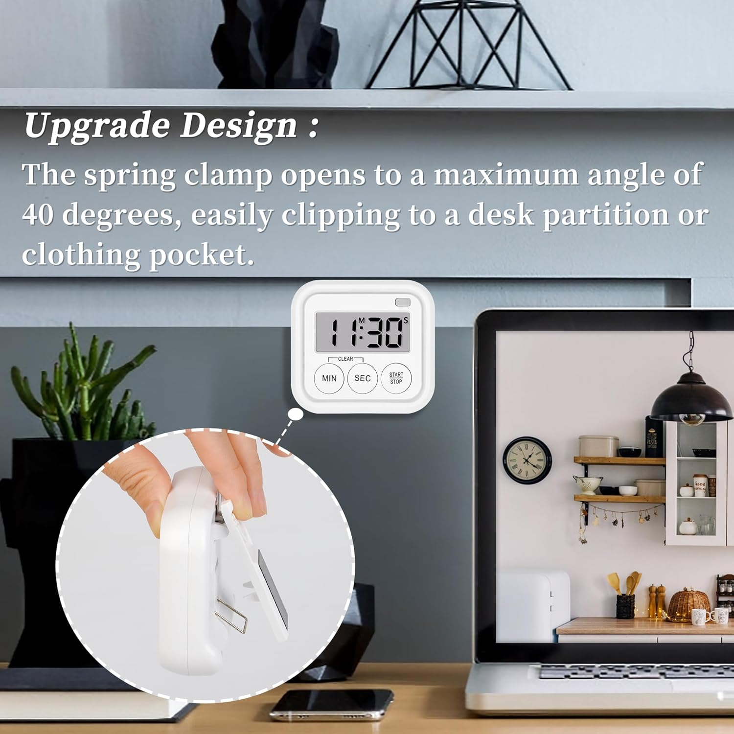 Timer, Kitchen Timers for Cooking Classroom Timer for Kids Teachers Digital Magnetic Timers 2 Pack, White