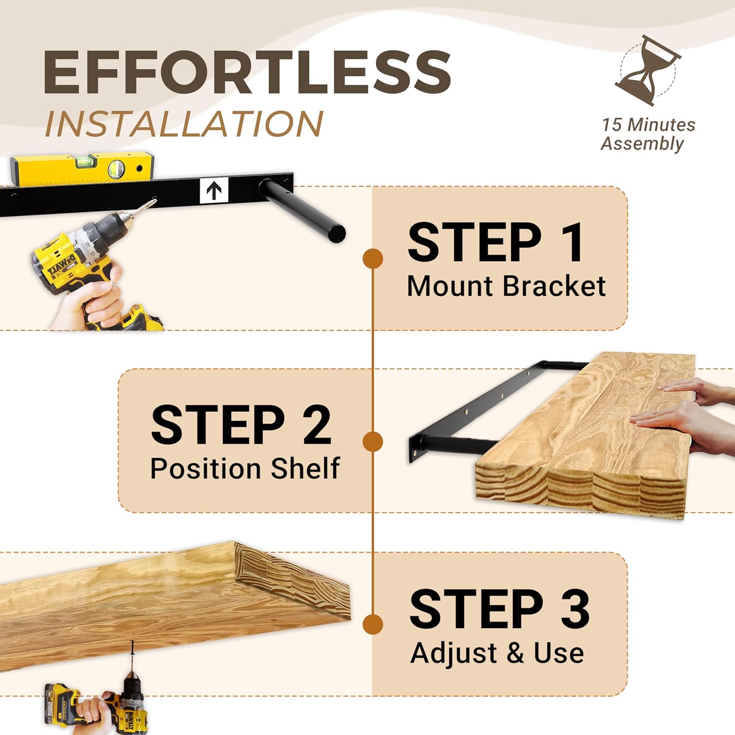 - ✅[𝐒𝐢𝐳𝐞𝐬 𝐭𝐨 𝐒𝐮𝐢𝐭 𝐘𝐨𝐮𝐫 𝐍𝐞𝐞𝐝𝐬]: Choose from 24", 36", 60", or 72" lengths and available in three finishes—Natural, Dark Brown, and Light Walnut, these shelves adapt perfectly to your storage and decor goals.