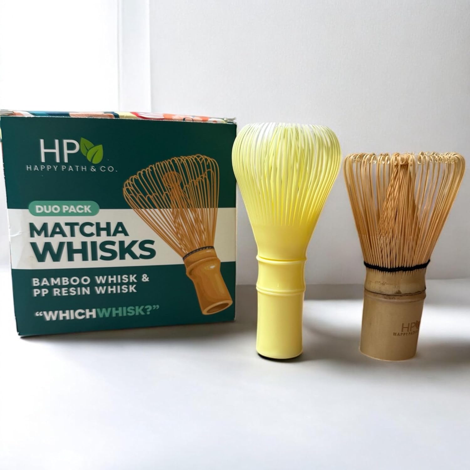- 【𝐄𝐋𝐄𝐕𝐀𝐓𝐄 𝐘𝐎𝐔𝐑 𝐌𝐀𝐓𝐂𝐇𝐀 𝐑𝐈𝐓𝐔𝐀𝐋】- Happy Path & Co matcha whisks offer the perfect balance of tradition and modern convenience. The handcrafted bamboo whisk (chasen) provides an authentic tea ceremony experience, while the durable resin whisk makes everyday preparation quick and effortless. Each cup turns out smooth, frothy, and completely lump-free.