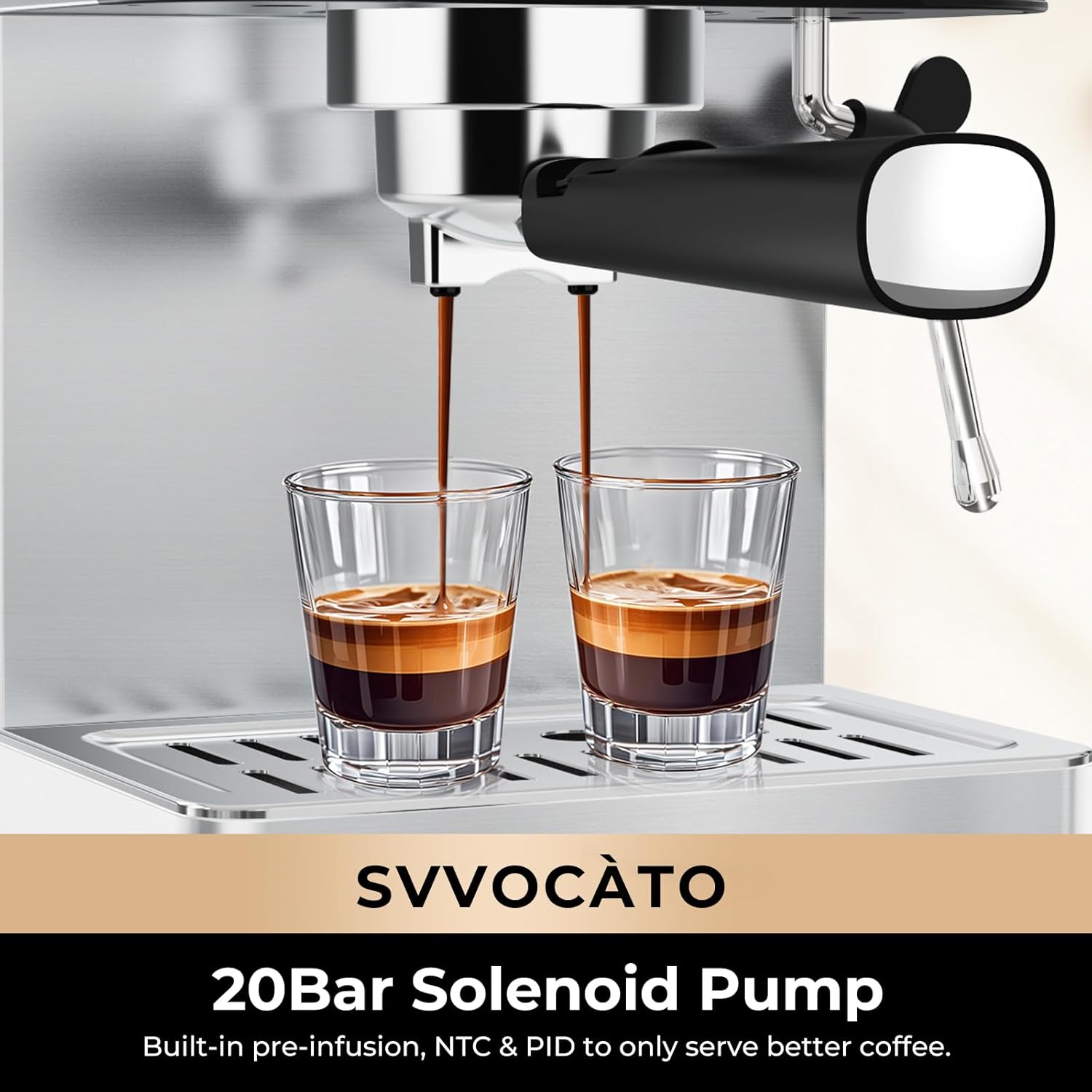 - Get Quality Coffee at Home: With NTC & PID dual temp control, our espresso maker keep the water temp at optimal range for richest coffee flavors. We've simplified coffee-making, lets you easily whip up Americano, Latte, or Cappuccinos anytime. It's not only a great fit for home or office but also an ideal choice for relatives and friends