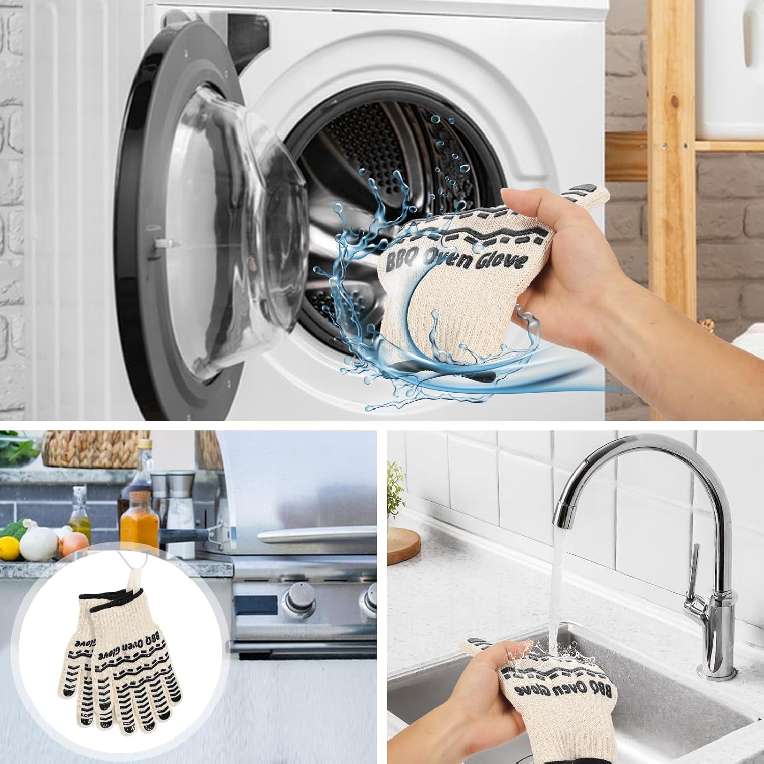 - Easy to Clean and storage: The kitchen cooking gloves can be hand or machine washed. The design allows you to easily hang them on the hooks, which are easy to dry and help you store them. Whether you use it indoors or outdoors, it is the perfect helper to make cooking easier