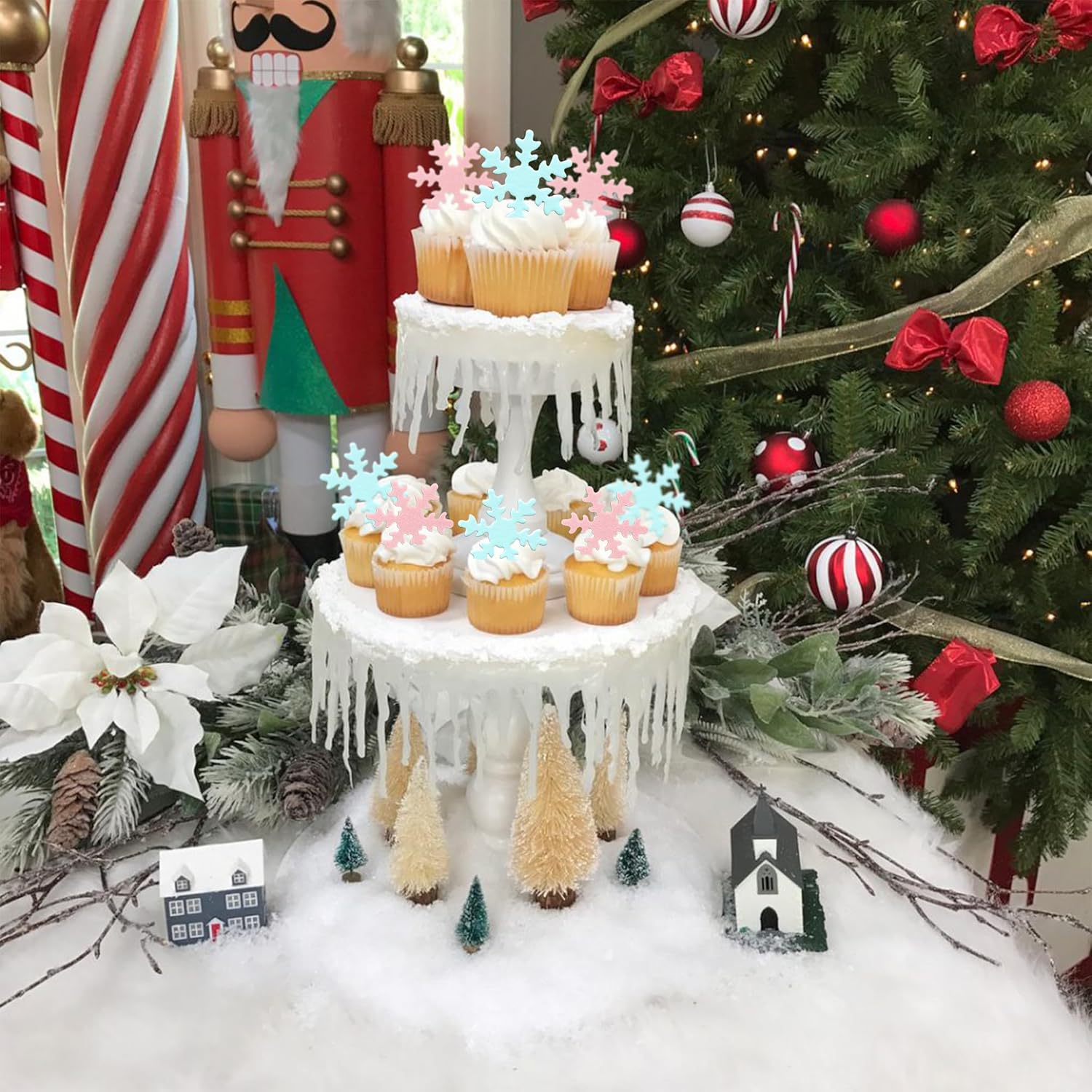 Gyufise 50Pcs Pink Edible Cupcake Cake Toppers Snowflake Cake Decorations for Christmas Winter Frozen Theme Party Supply Decoration Blue Pink