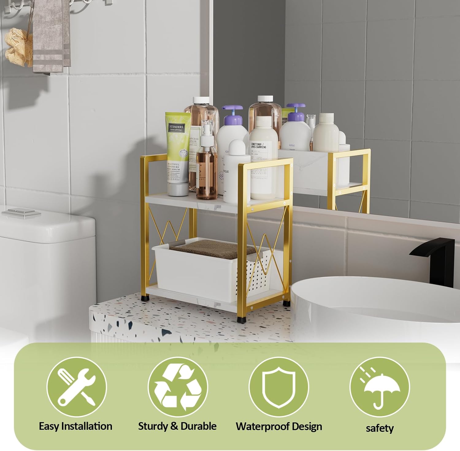 - Efficient Space-Saving Design: The two-tier structure of this kitchen counter organizer provides ample storage for all your coffee bar essentials and spice shelf items, making it a versatile addition to any countertop, whether as a coffee station organizer or a general countertop storage solution