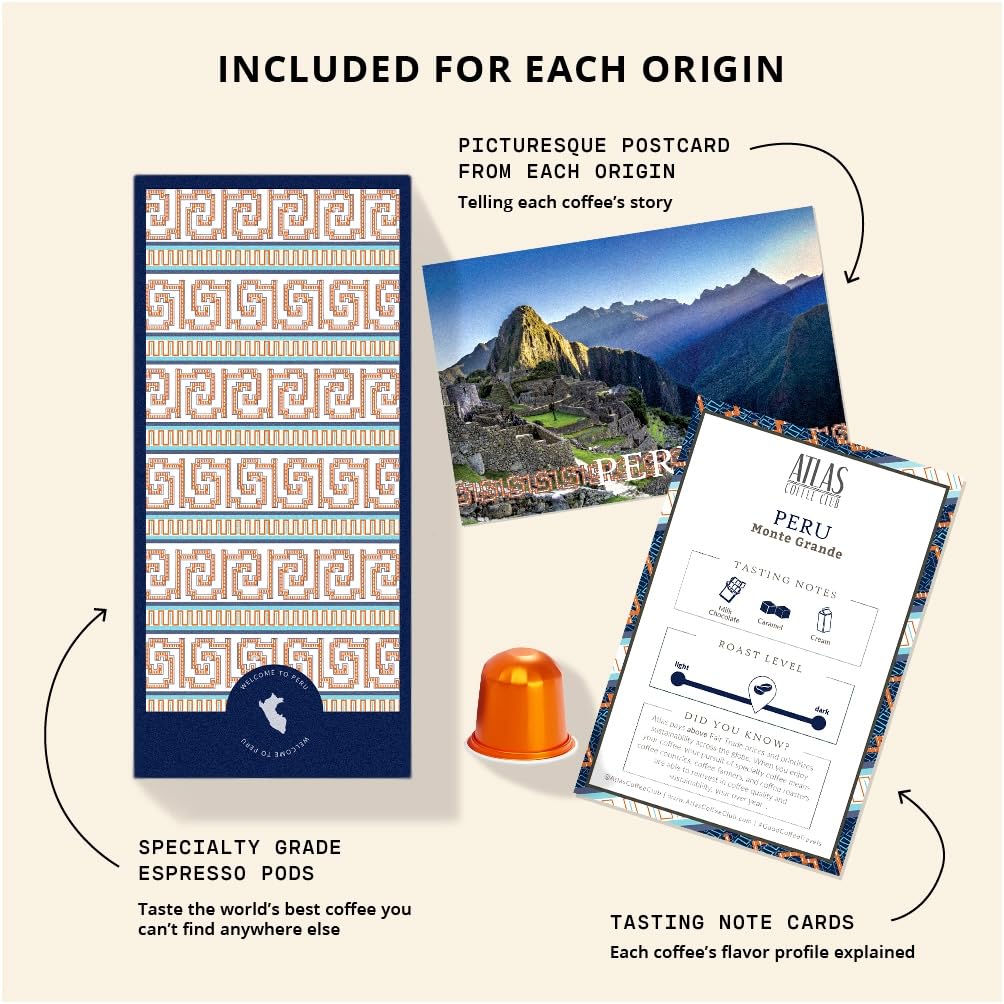 Atlas Coffee Club Espresso Pods Compatible with Nespresso Original– Medium Roast Variety Pack (40 Count)– Aluminum Capsules from Kenya, El Salvador, India & Uganda– Intensity 7–9