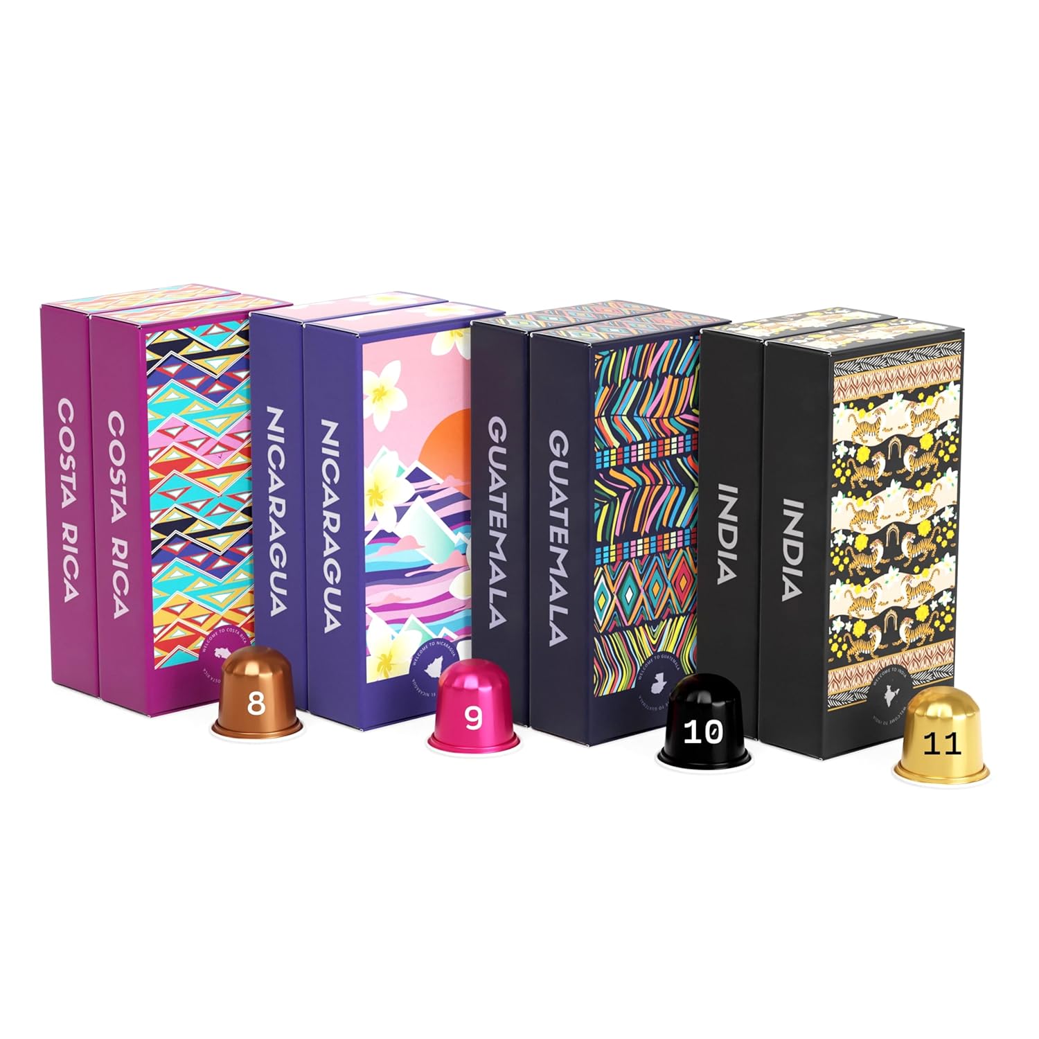 - FLAVOR FOR REAL: Explore Costa Rica (spiced fig + molasses), Nicaragua (cajeta + banana),Guatemala (raisin + oatmeal) and India’s (roasted almond + prune) vibrant tasting notes. Freshly roasted and ready to deliver a flavorful and rich shot of espresso. This premium, single-origin coffee is 100% Arabica.