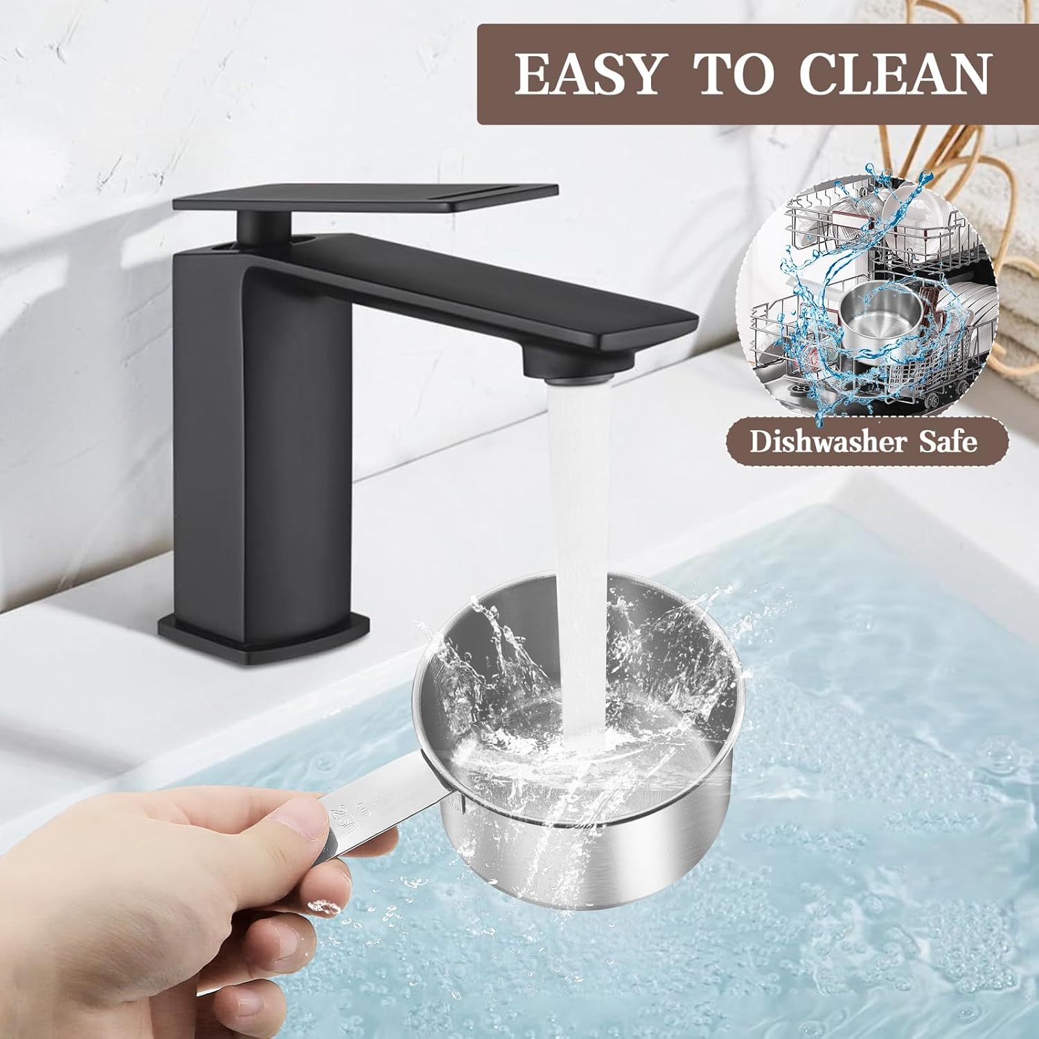 - 【PRECISE MEASURING MARKS】 Featuring precise metric and U.S. markings (60 ml | 1/4 cup), these metal measuring cups ensure accurate measurements for cooking, baking, or brewing coffee, eliminating guesswork and errors.