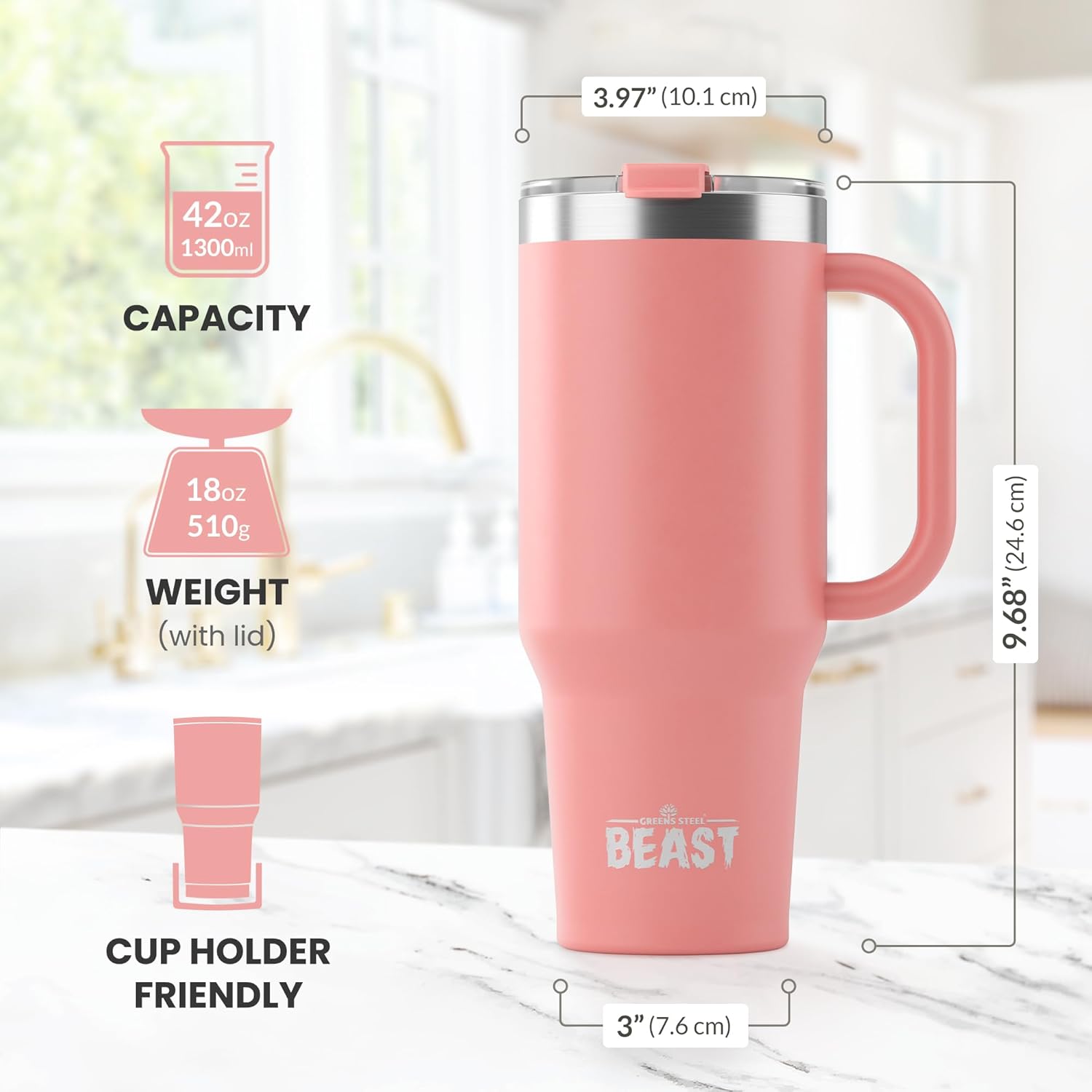 - BIGGER & BETTER – NEW HUGE 42oz and 50oz BEAST Tumbler with Handle has arrived! Offering unprecedented capacity. Now hold even more of your favorite beverage at the perfect temperature for longer!