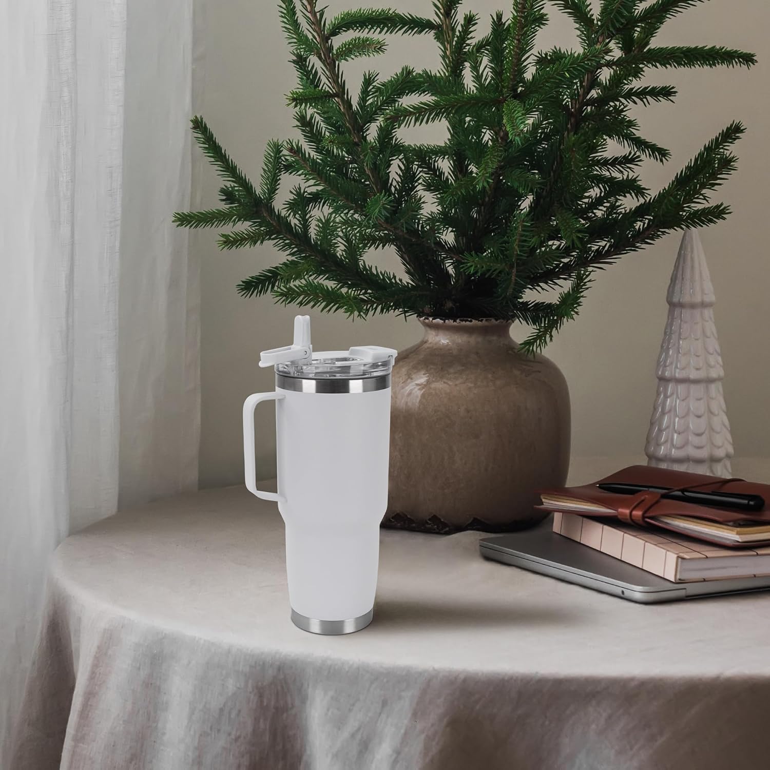 - Tumbler with handle:The welded handle provides a firm grip on your drink. It's large enough for anyone to hold easily, allowing you to carry the tumbler around and take a sip with one hand.