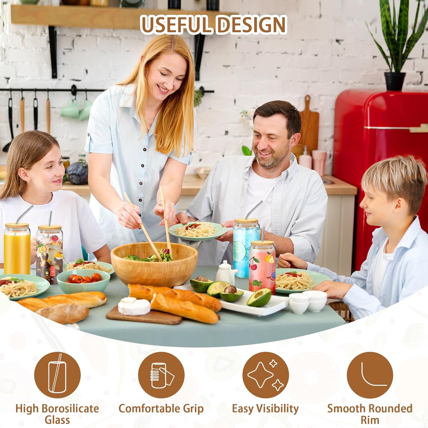 - Multi-Purpose Can Beer Glass Cups: The can design glass cups great for any occasion. Glass cups with lids are widely loved by families, kitchen, breweries, cafes, bars and restaurants. Enjoy the drinking glasses with bamboo lids at home or in your small business