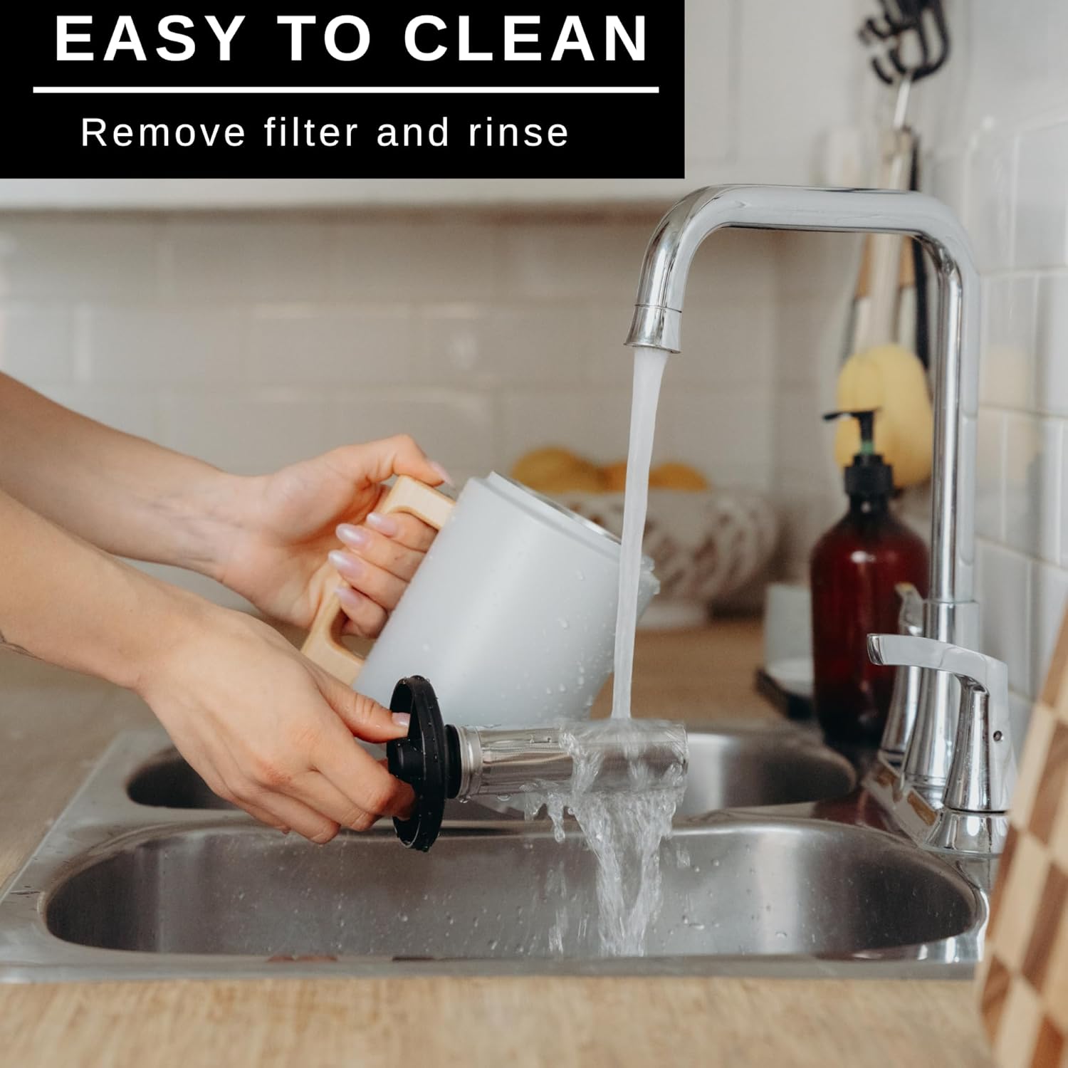 - FAST, EASY MAINTENANCE as we made our pour over coffee filter reusable. To clean the grounds out of the mesh, just rinse the coffee cone out with water. No paper, no waste, no hassle